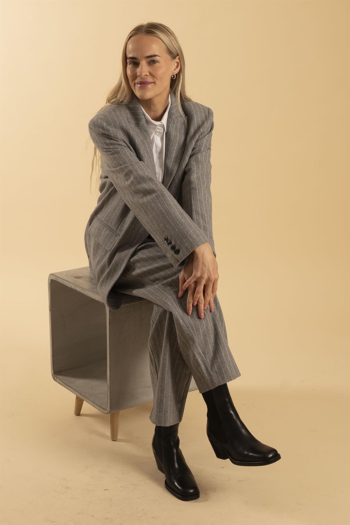 Lekker blazer med klassisk nålestriper som har et skarpt, tidløst snitt og lukkes med to knapper.