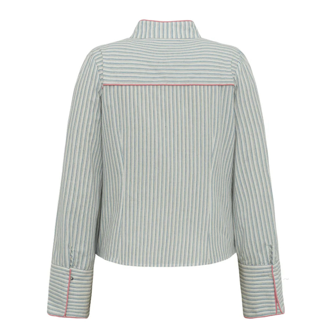 Vakker, skreddersydd stripete skjorte. med kontrast-piping ved halsen, stolpen og mansjettene, noe som gir et raffinert og eksklusivt utseende.