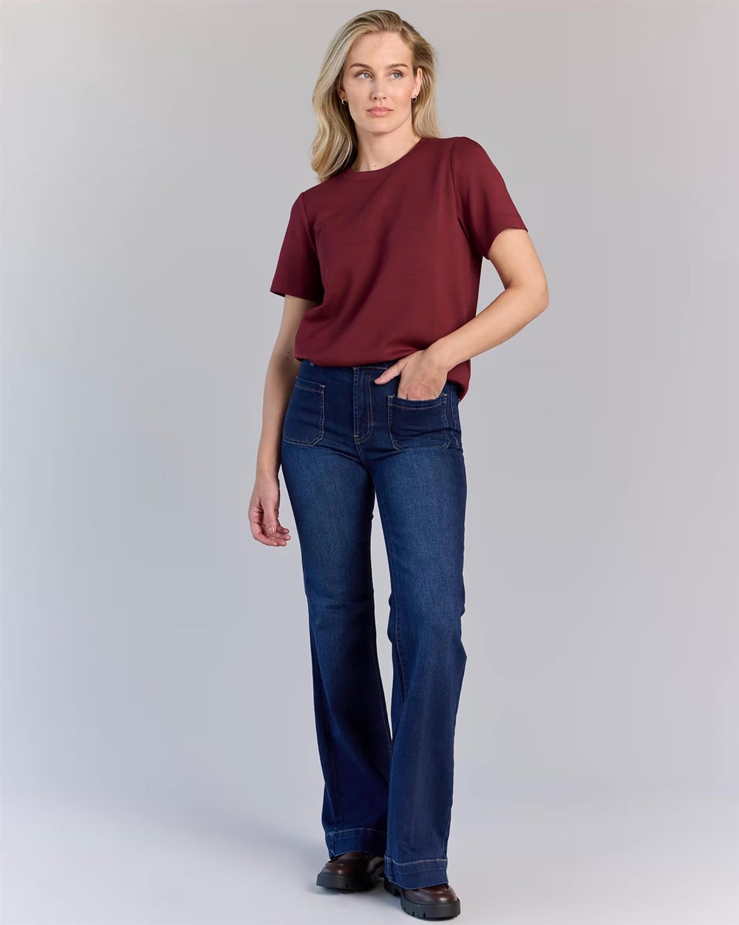 Ps. Vår jeans er i fargen som på bildene uten modell. Bilde av modell for å vise passformen.
