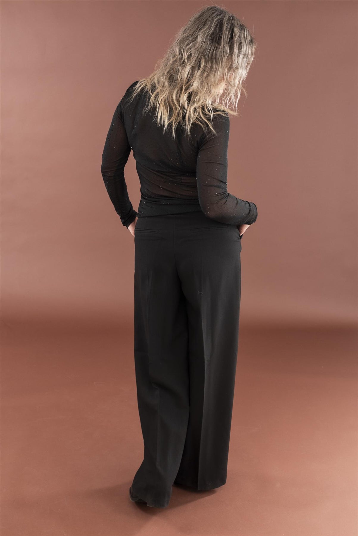 Klassisk bukse med vide ben gir en avslappet passform og tidløs silhuett.