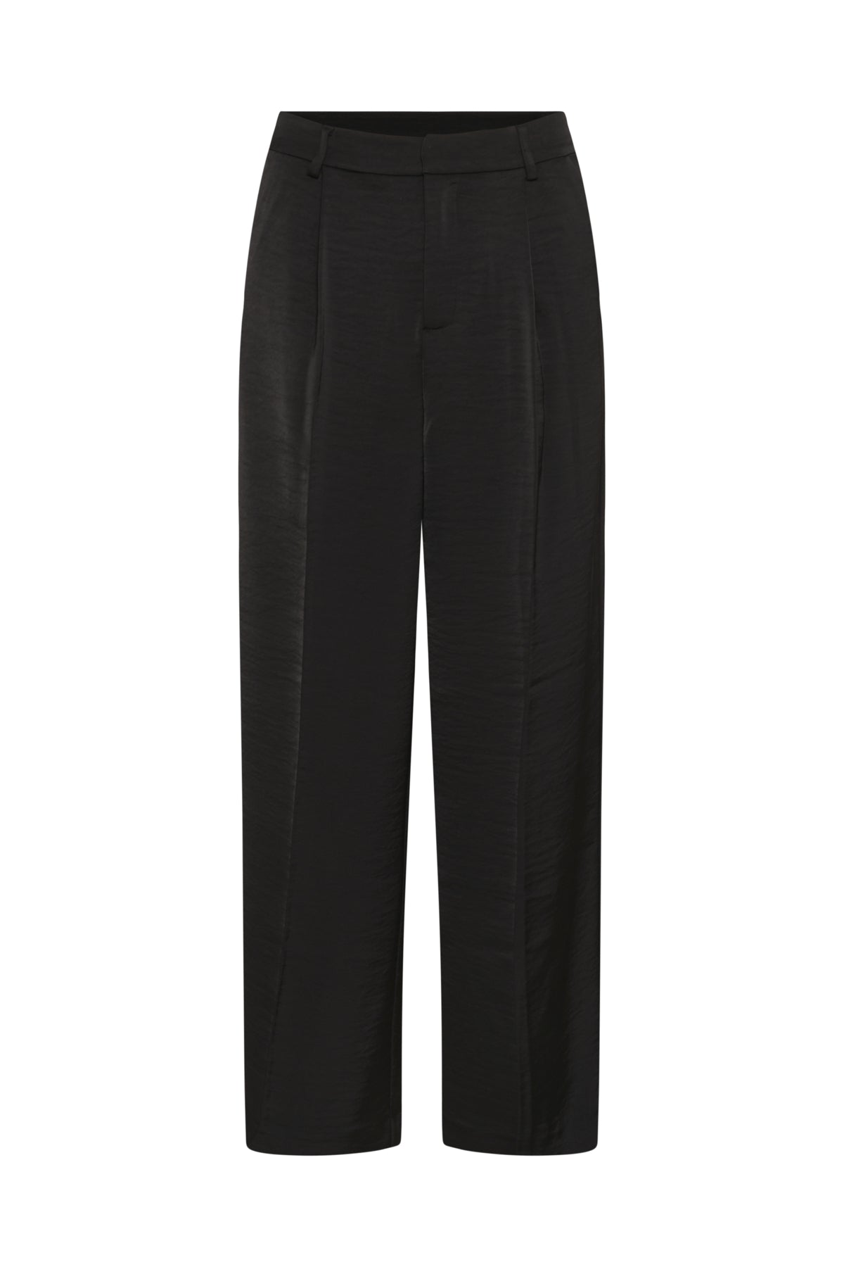 Kule dress-bukser med vidde og rett silhuett, pressede folder foran og beltehemper i shiny look.