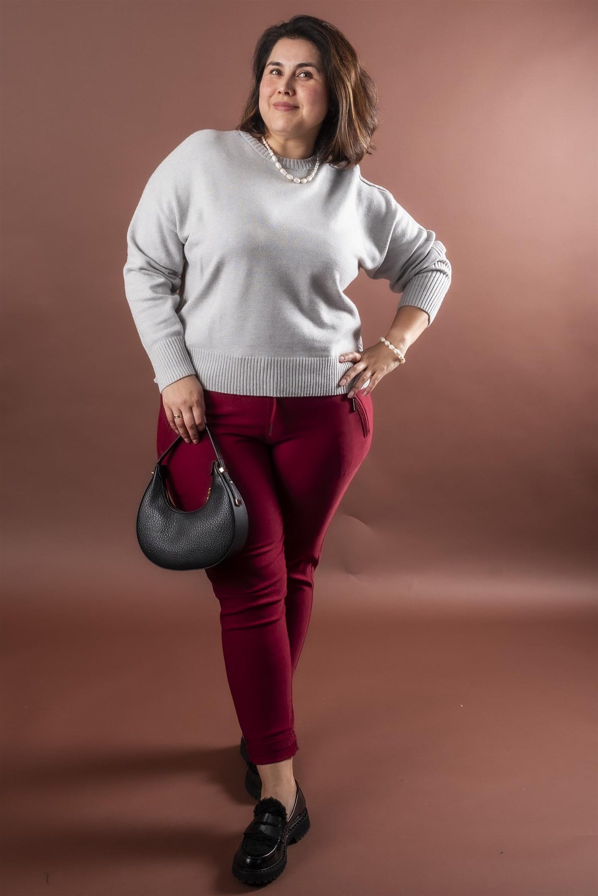 Vår modell er 165 cm og har str. XXL. Genseren er Frrosel fra Fransa.