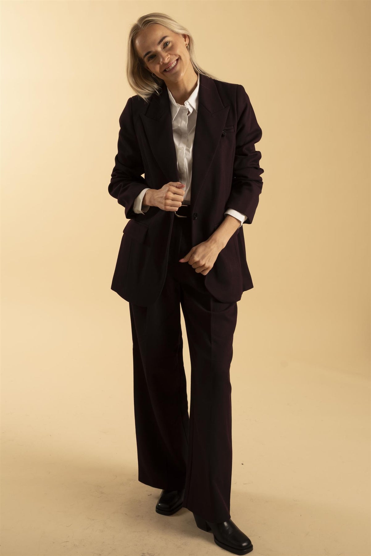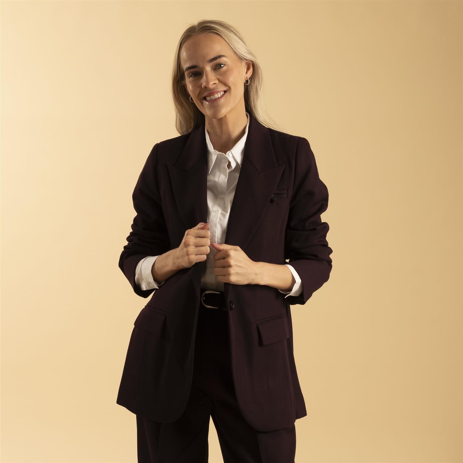 Råtøff og trendy blazer med klassiske legg og knapper i ryggen for å kunne gjøre jakken mer feminin og innsvinget.