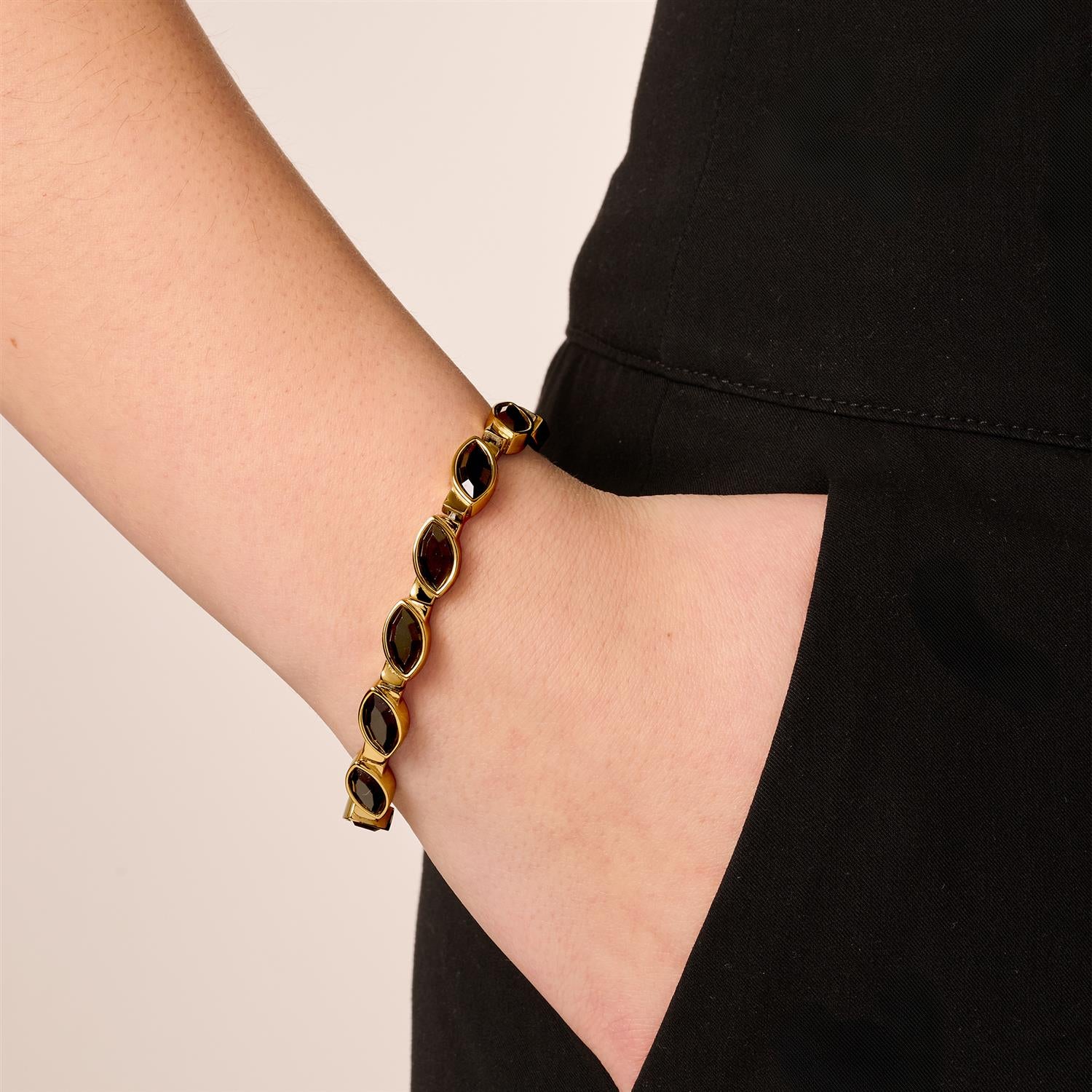 Et elegant og smalt tennisarmbånd designet i polert stål montert med en rekke navette-formede krystaller.