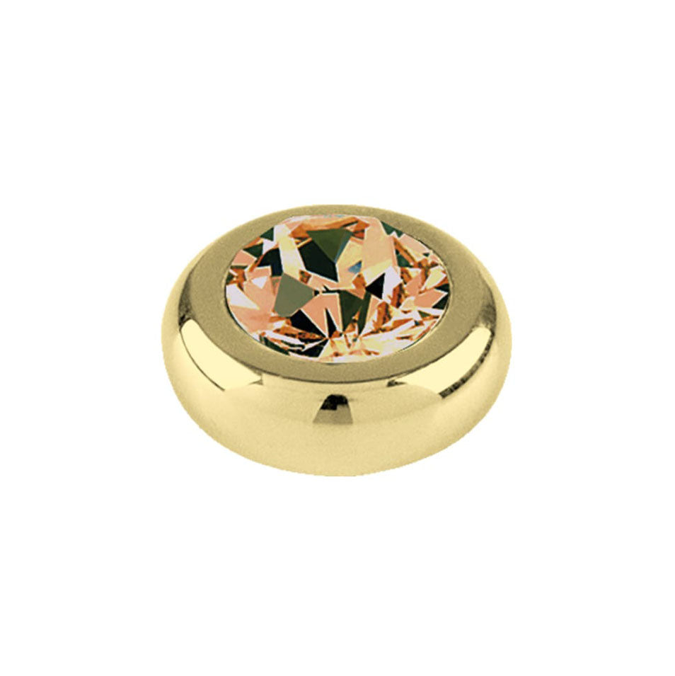 Fra Dyrberg/Kern`s Compliments-kolleksjon i rustfritt stål: Design din egen ring med JOY-toppen: light topaz og gulltonet finish.