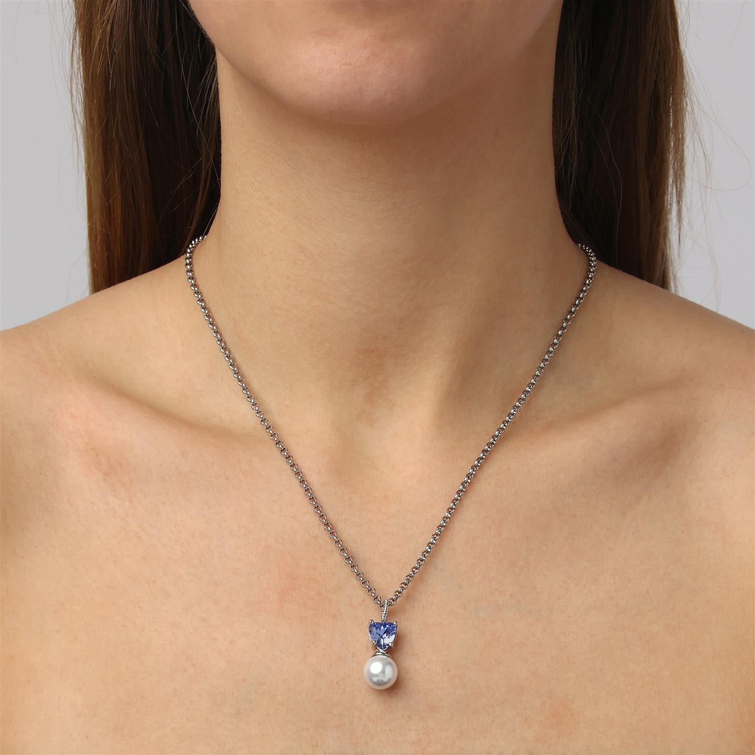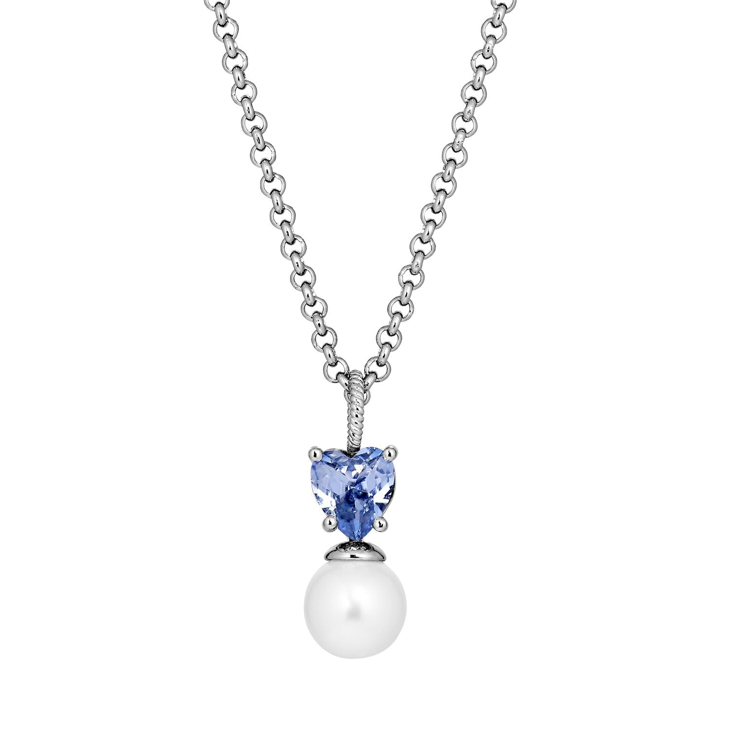 Colume Necklace - SS/White pearl, Light Blue Crystal