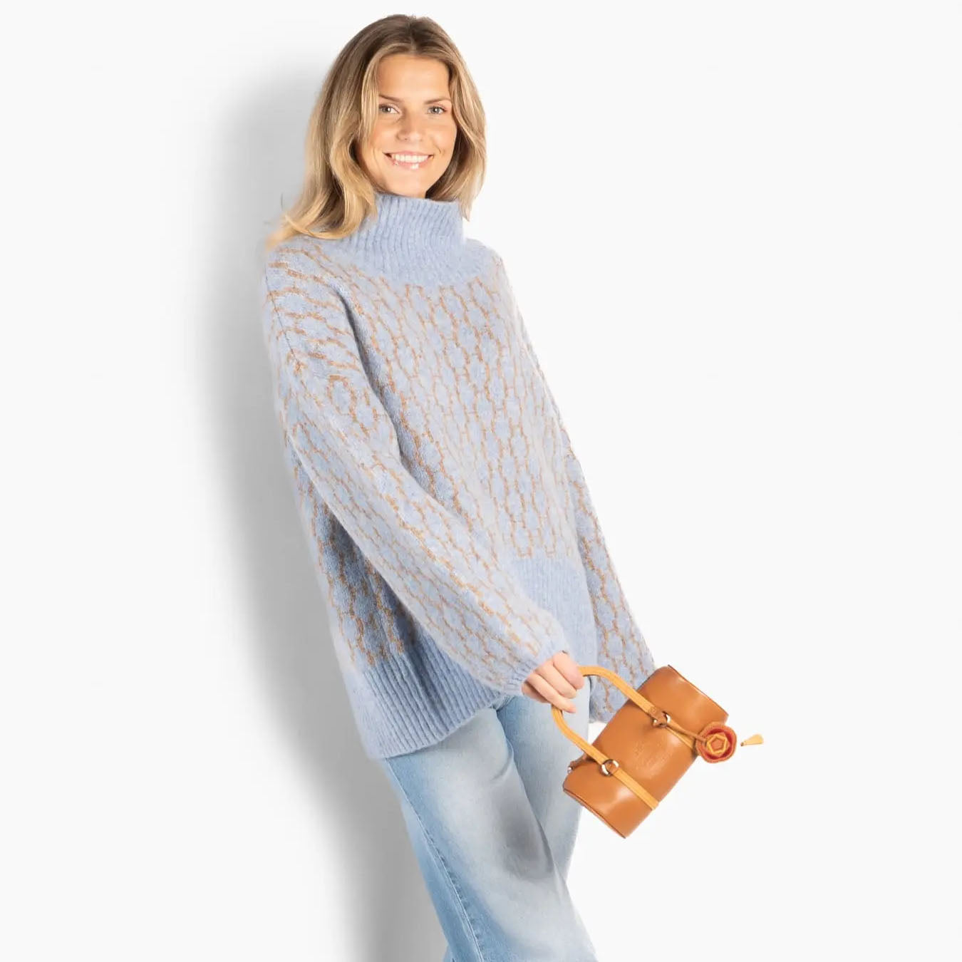 Strikket i en luksuriøs mohair–merino-blanding som gir både mykhet og stil i hverdagen.