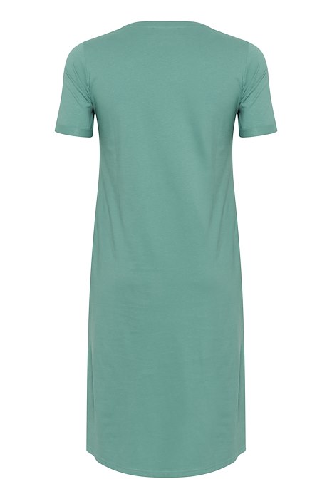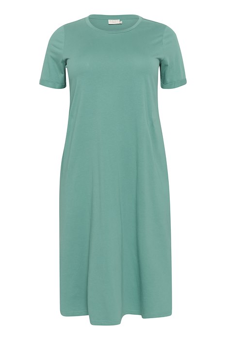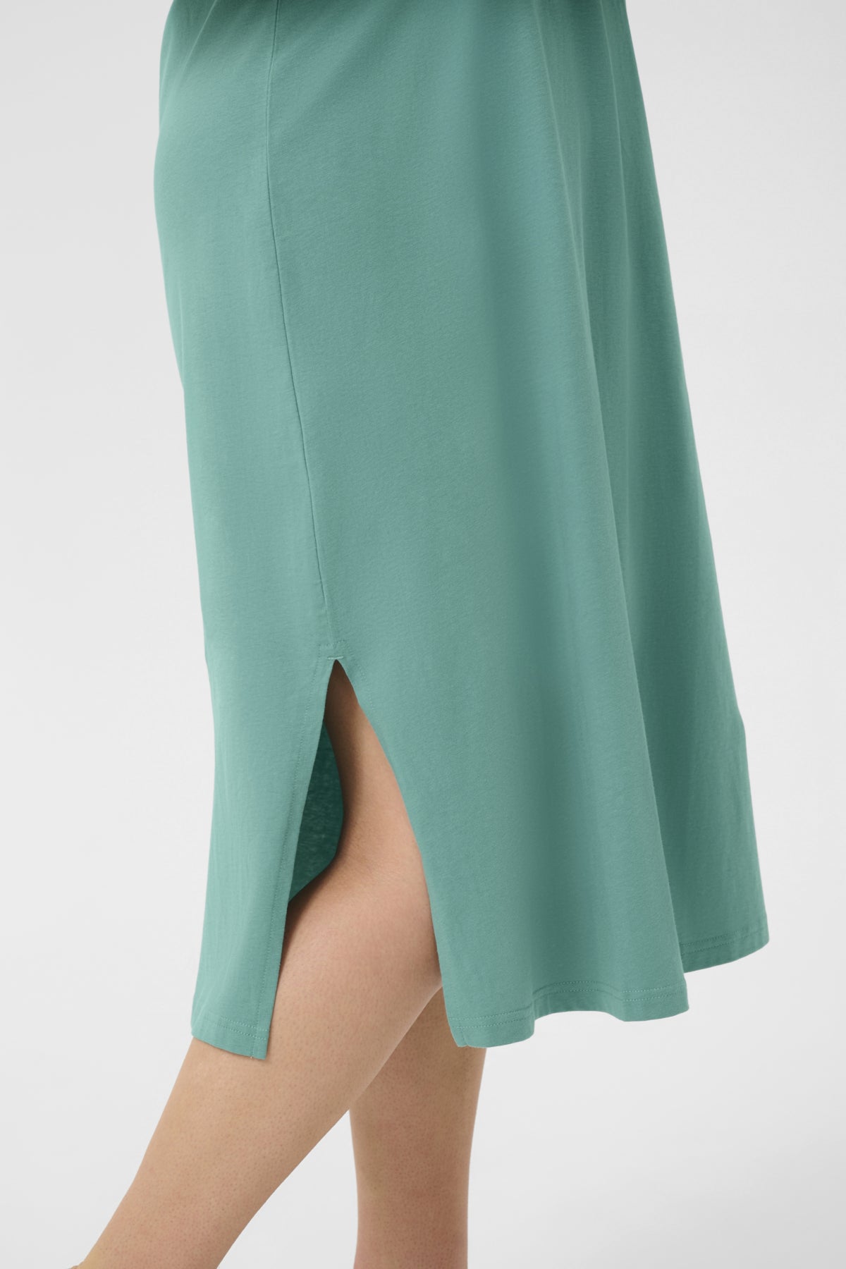 Midi-kjole med t-skjortefasong, rund hals, korte ermer og sidesplitter.