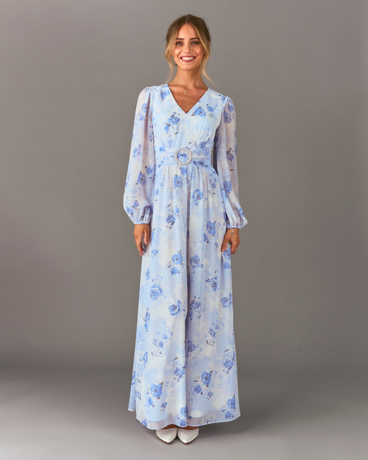 Det florale mønsteret og det fallende skjørtet gjør kjolen perfekt til bryllup, sommerfest og andre spesielle anledninger.