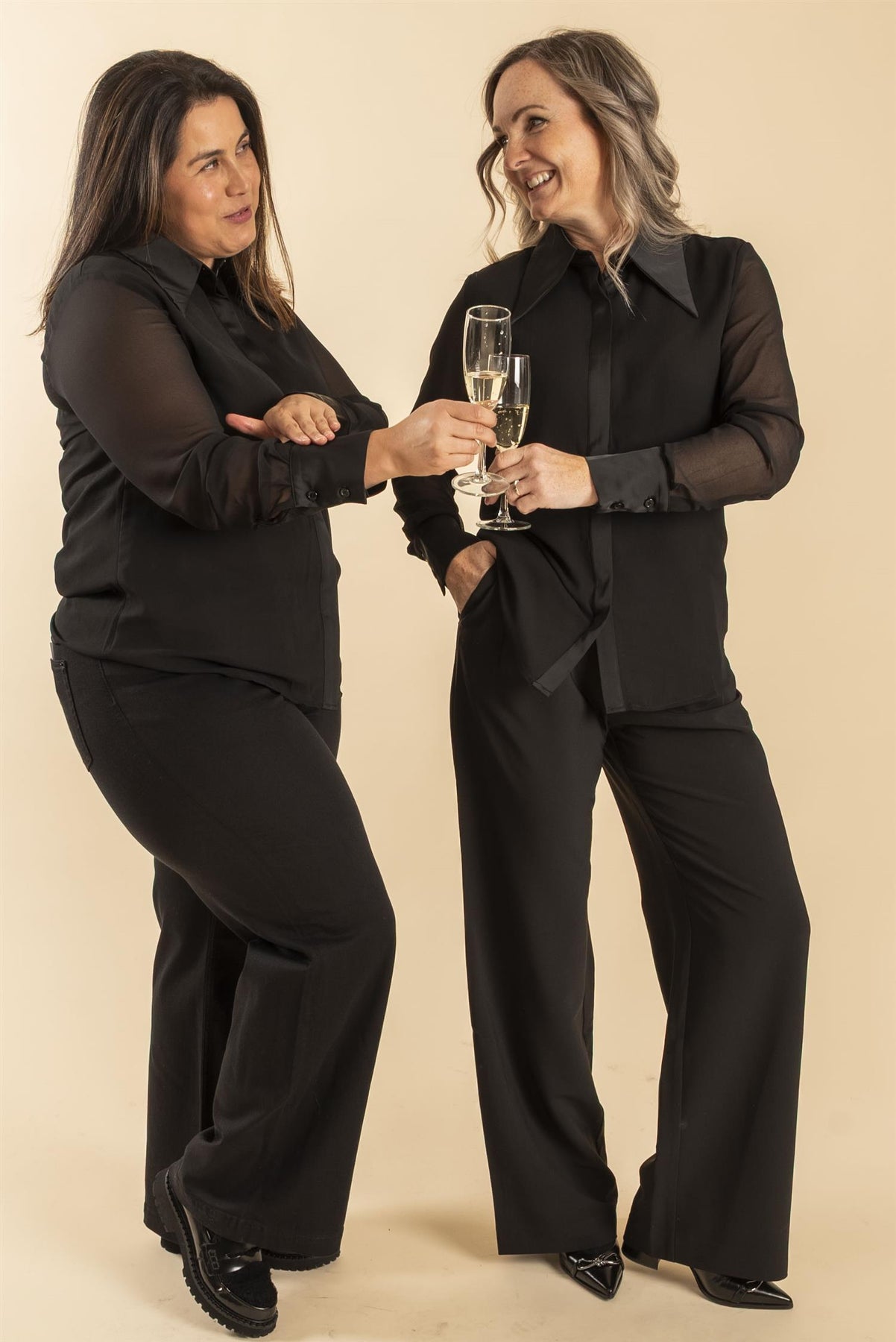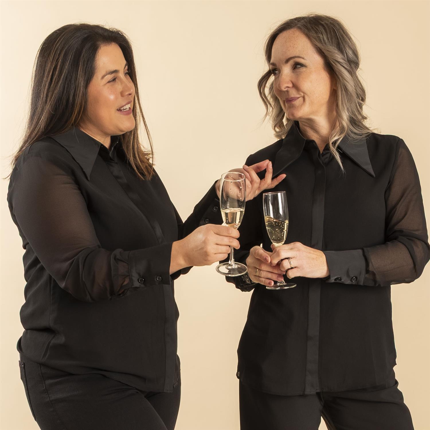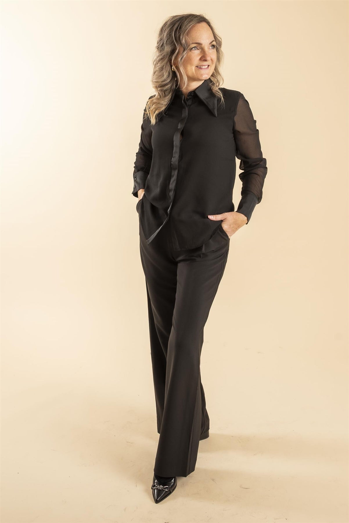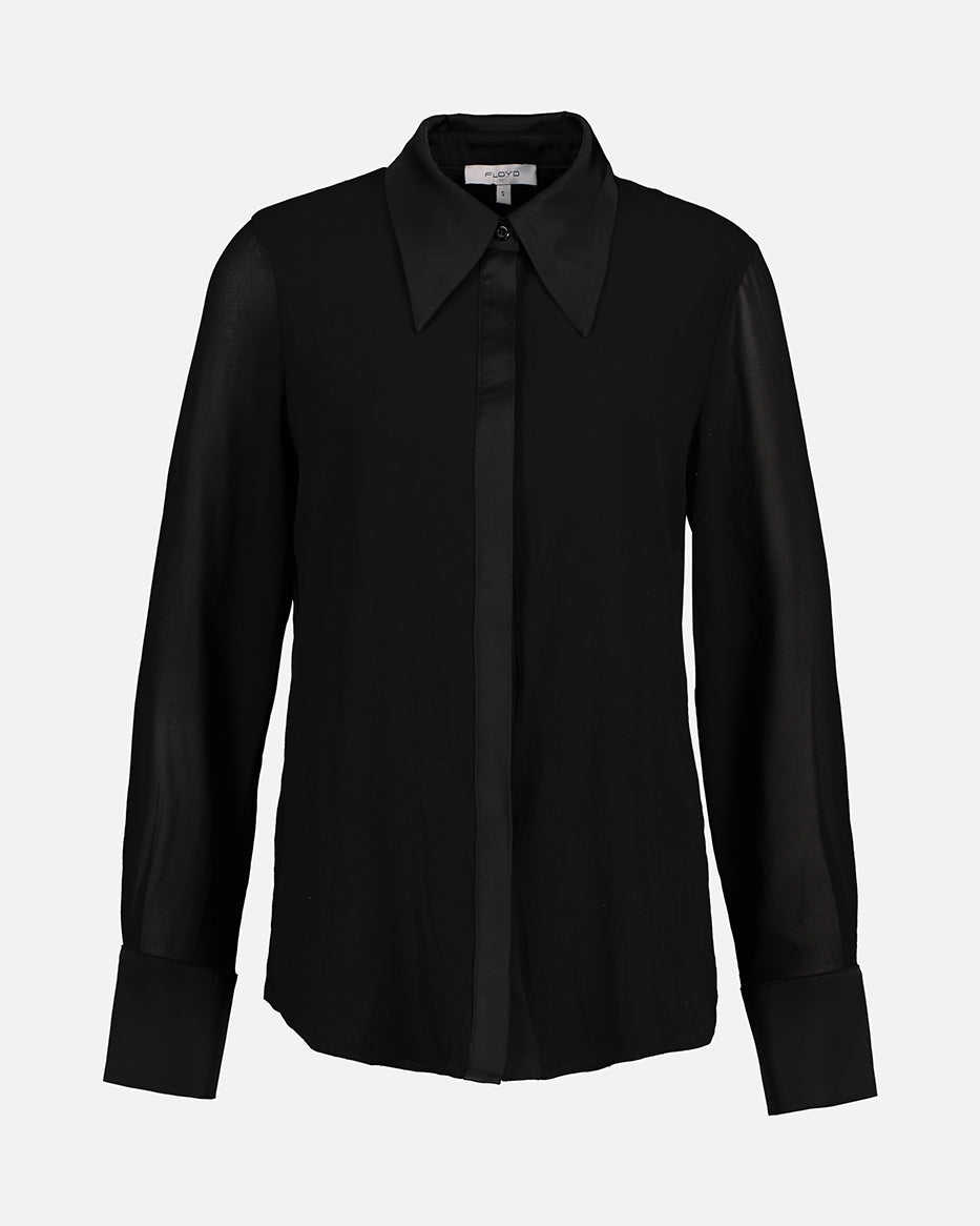 Råkul klassisk skjorte med med gjennombrutt chiffon i selve stoffet, og sateng snipper, knappestolpe og mansjetter som gir en "smoking-look".
