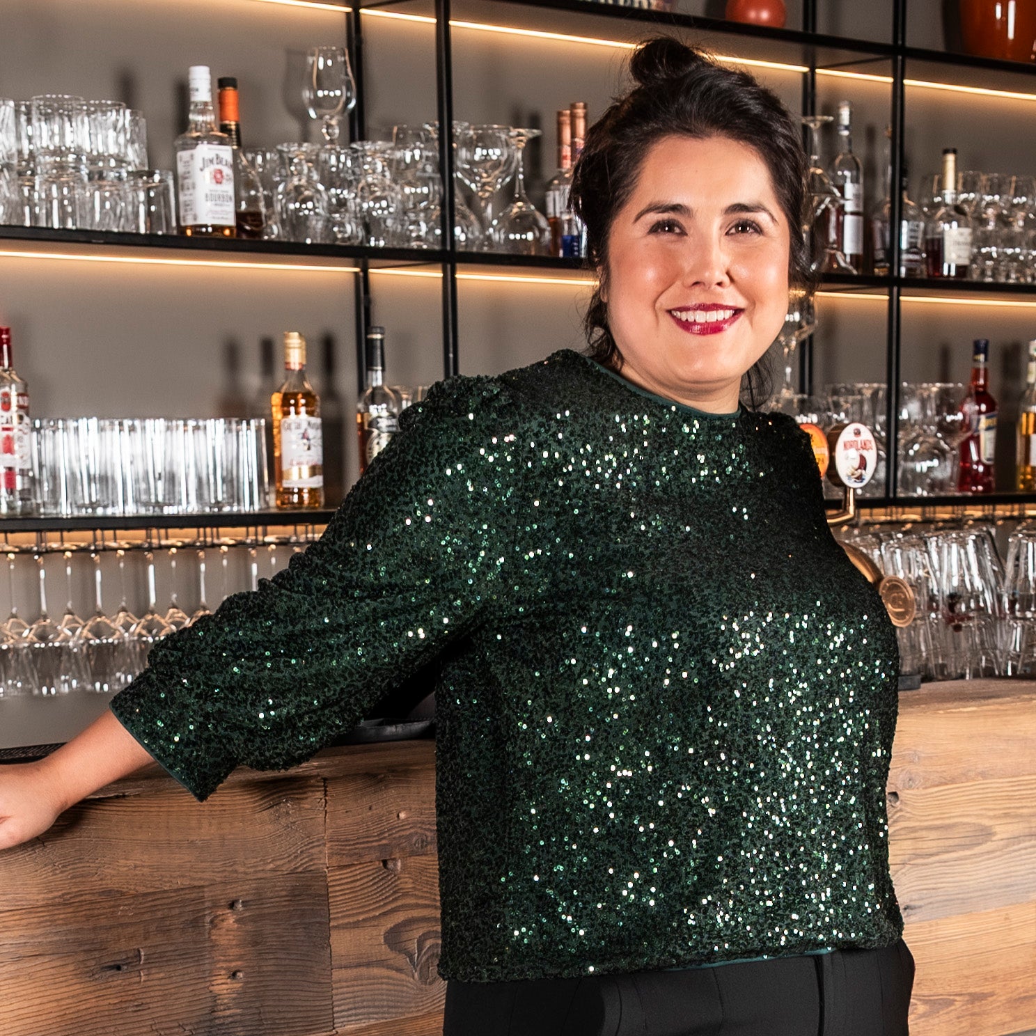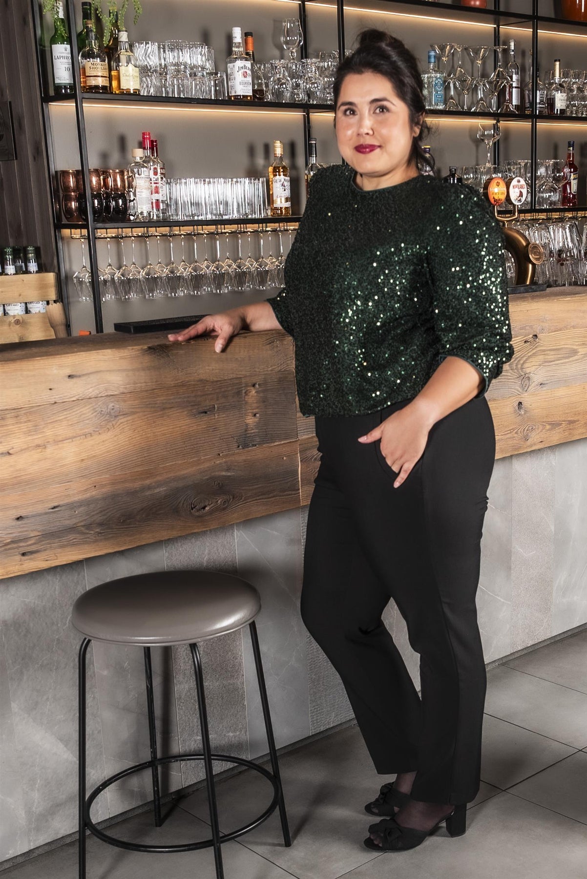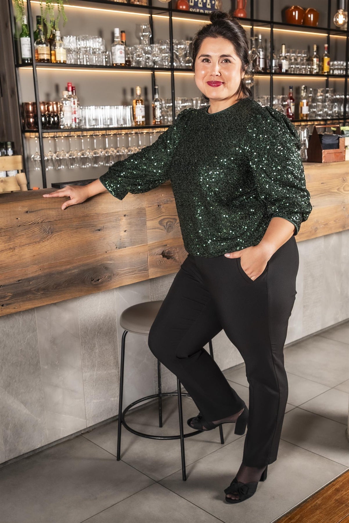 Style toppen med en lekker sort dressbukse og pumps for å få en fest klar look. Bringe paljetter inn i hverdagen? Style med din favoritt jeans, blazer og boots for en lekkert hverdagsantrekk.