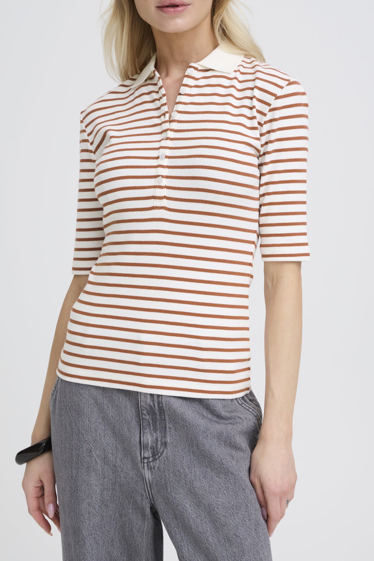 BYSANANA POLO - MARSHMALLOW/MARSALA STRIPE