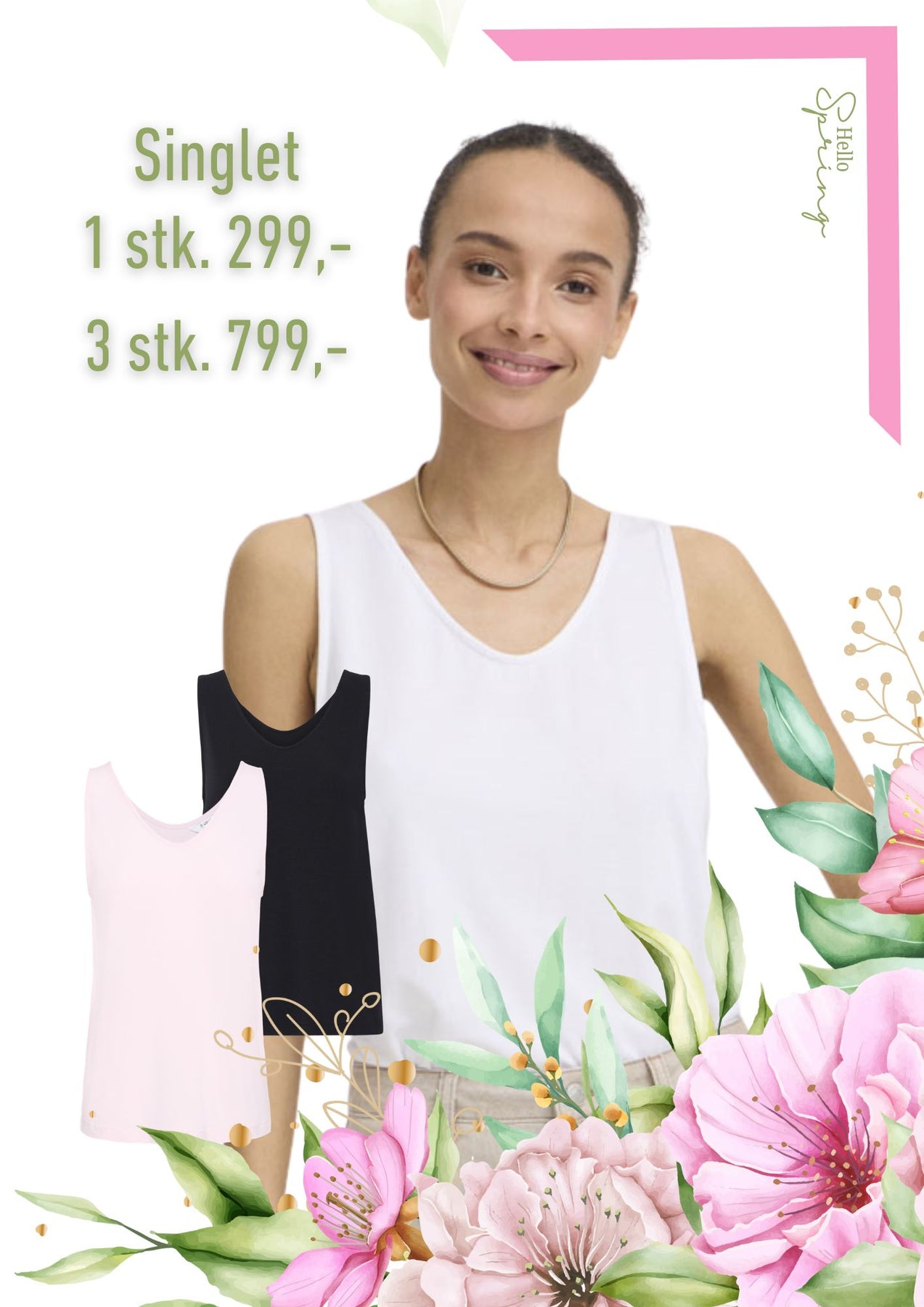 Uunnværlig singlet med rund hals, brede skulderstropper og rett silhuett.