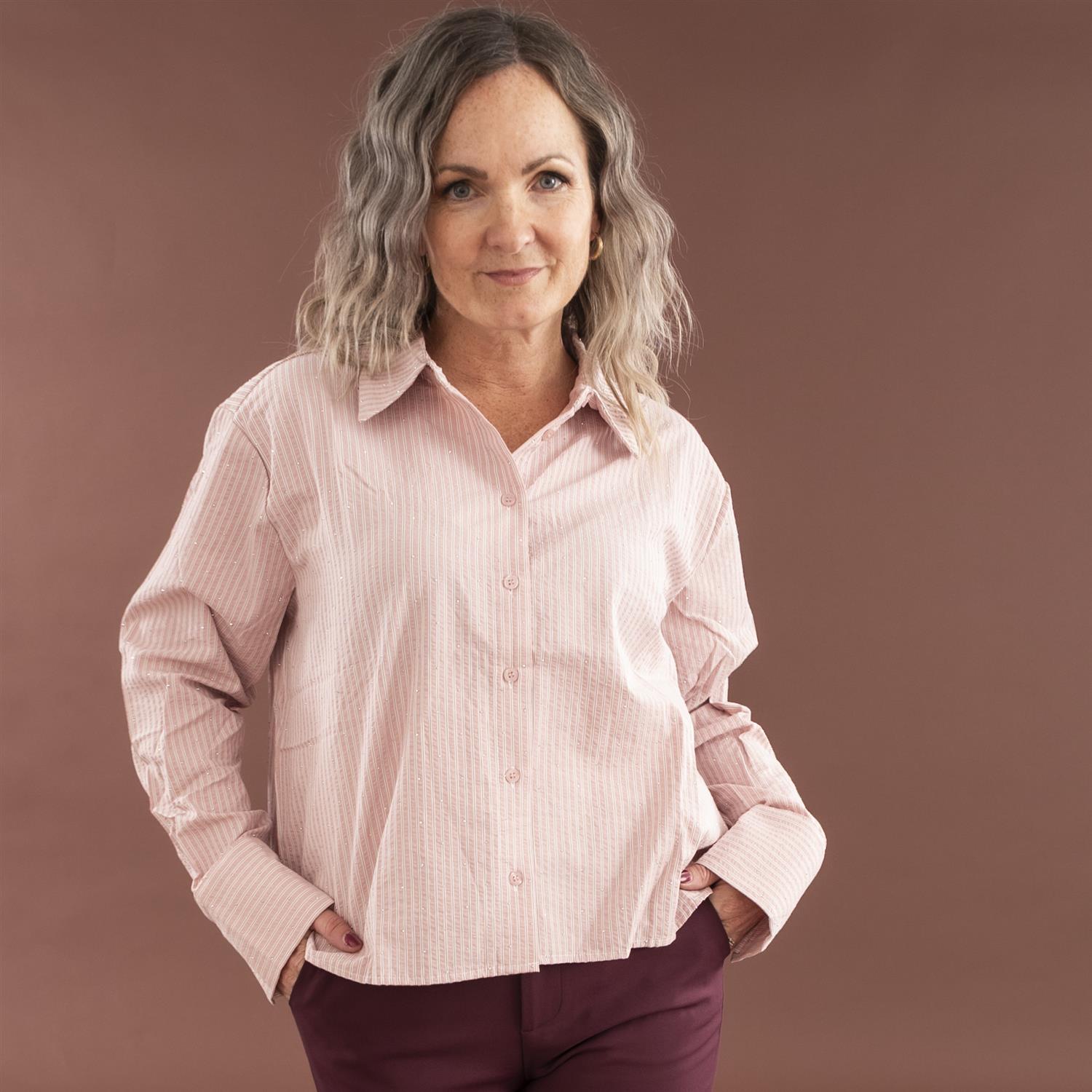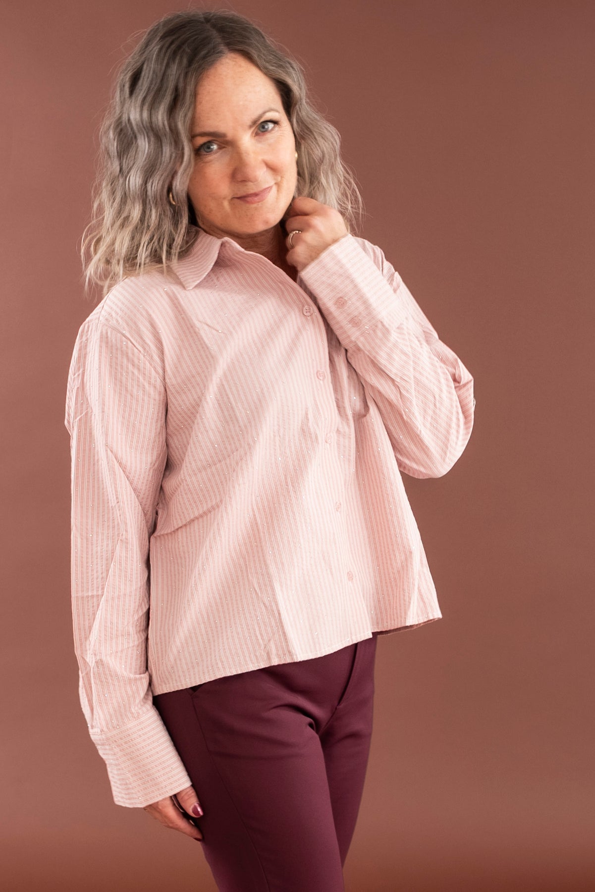 Boxy skjorte i kreppet tekstur som er overstrødd med glitter.