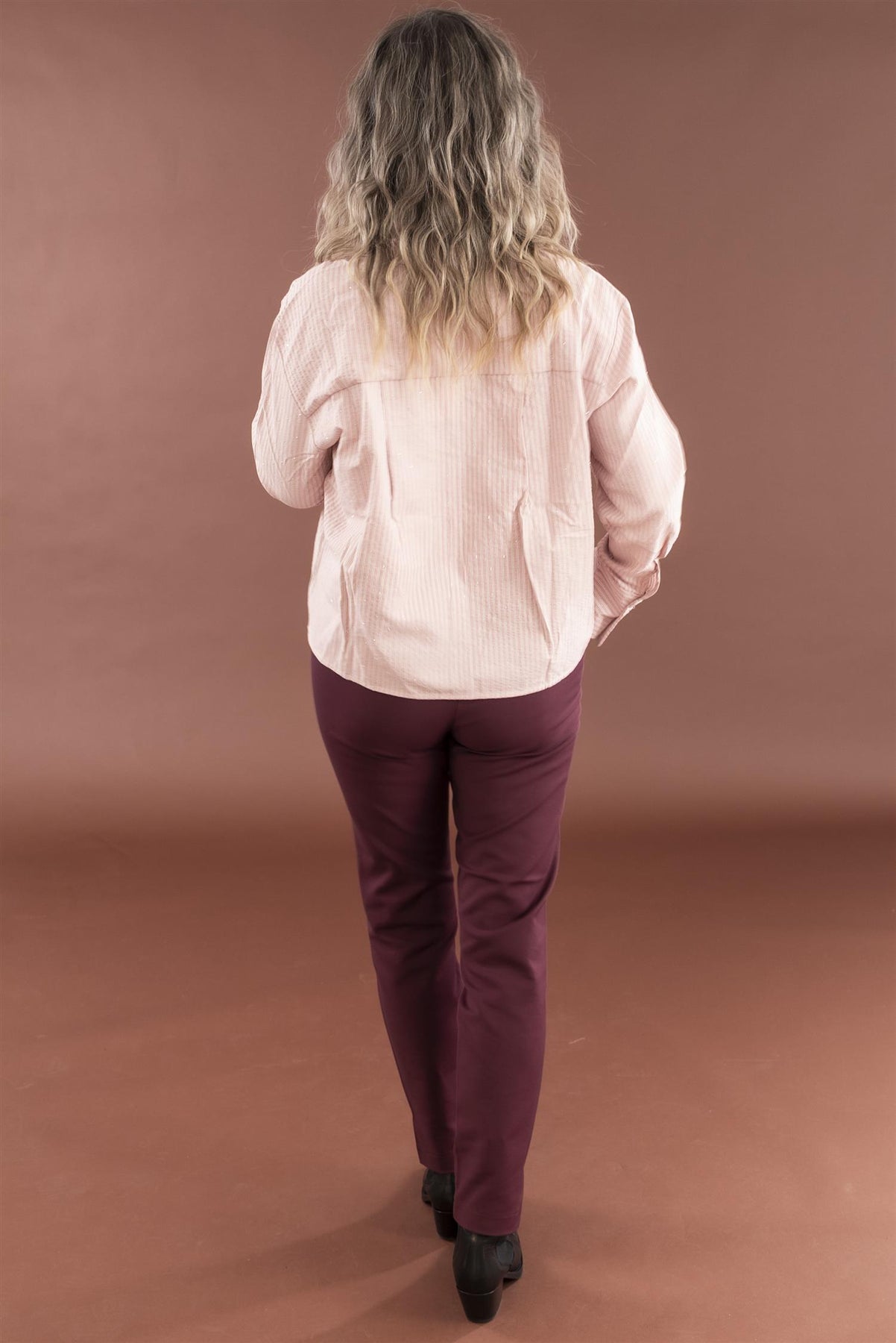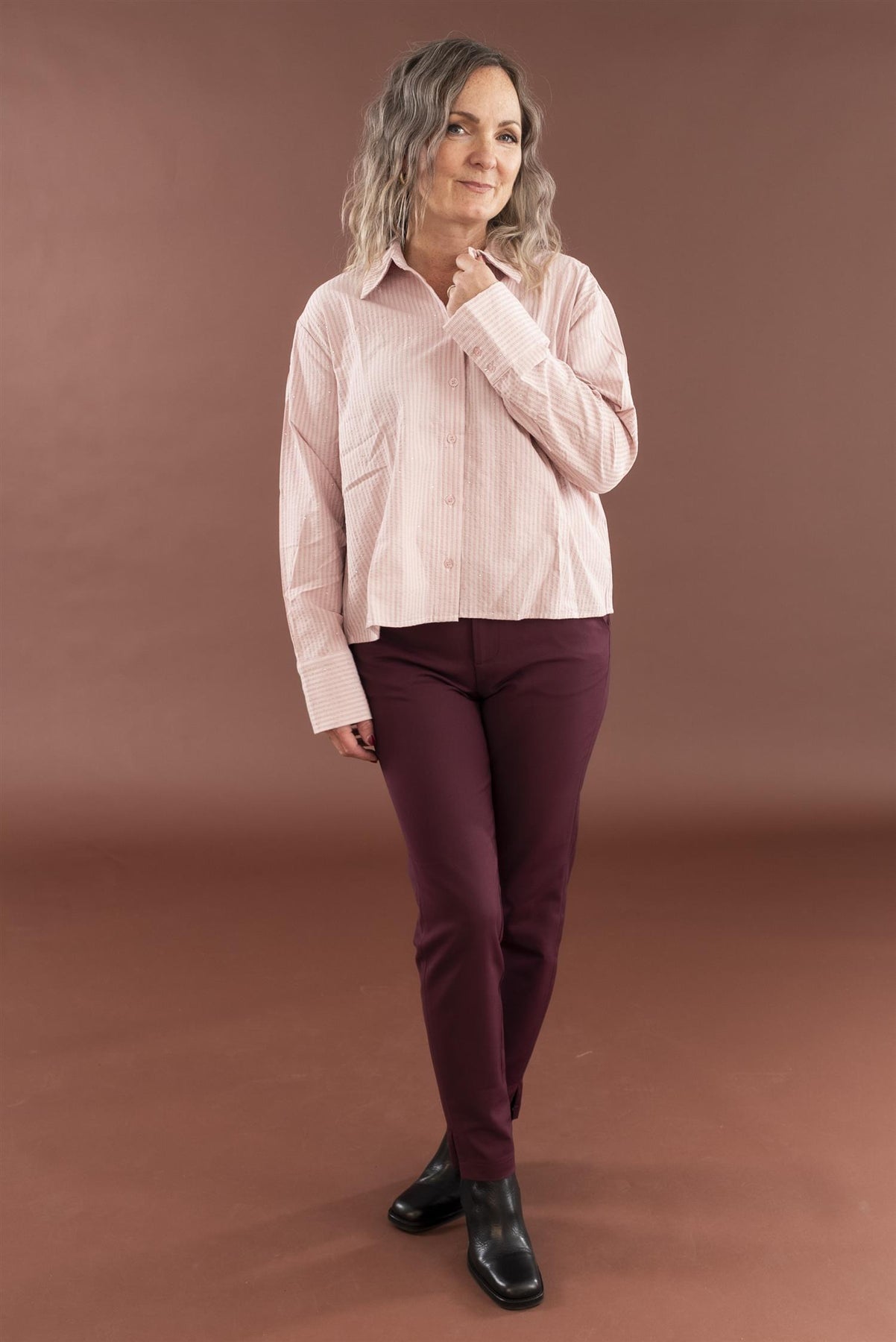 Kortere lengde og subtile vertikale striper for et rent, moderne uttrykk.