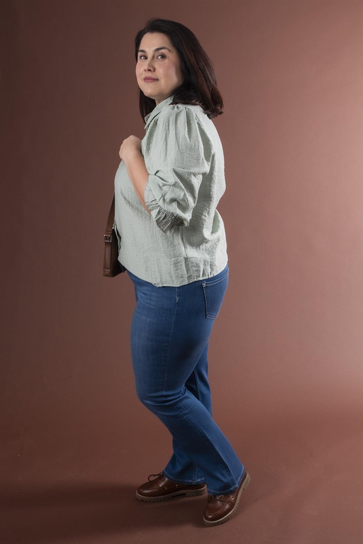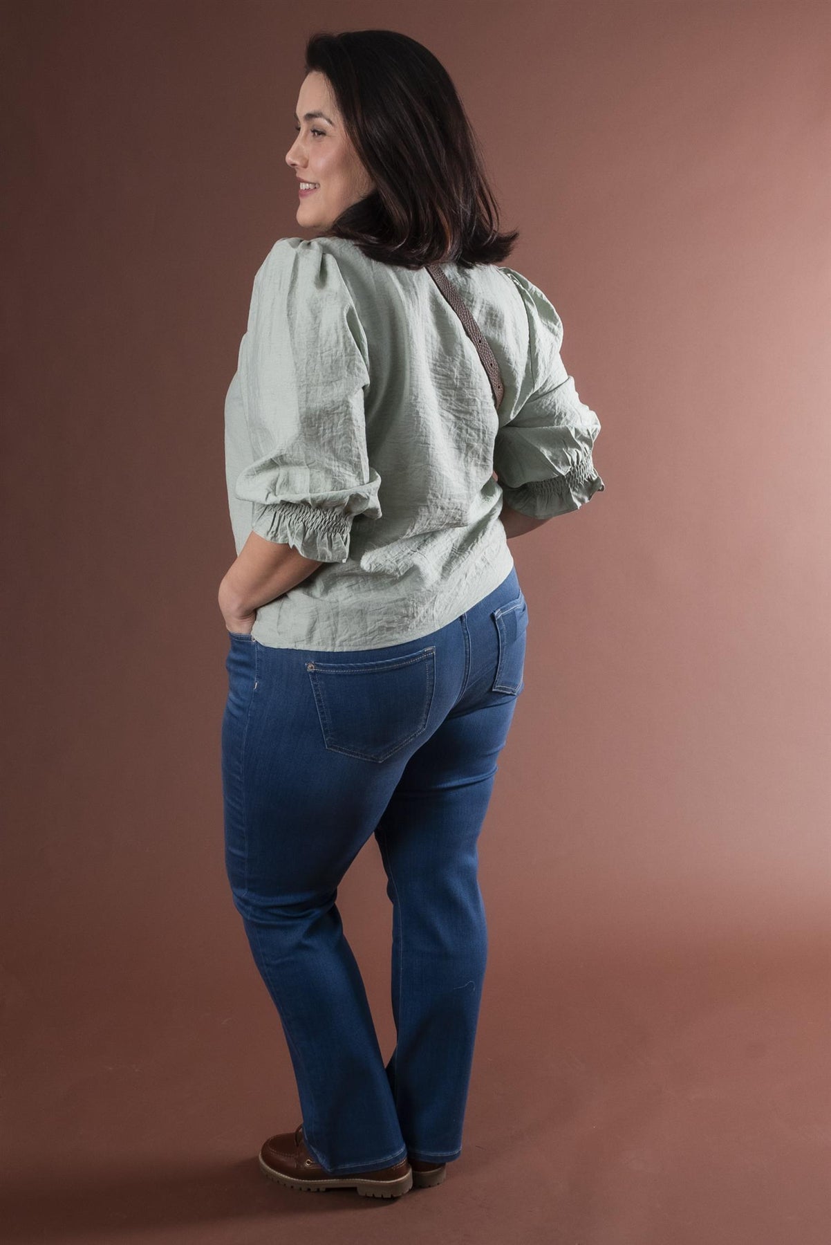 Vår egen modell er 165 cm og har str. 33/30.