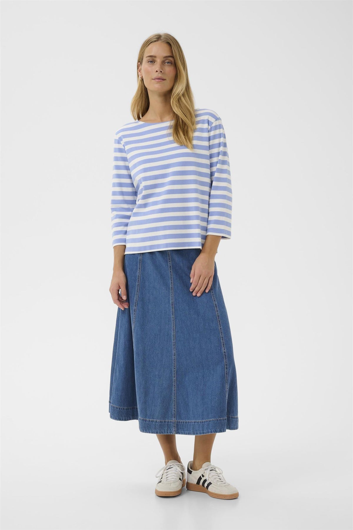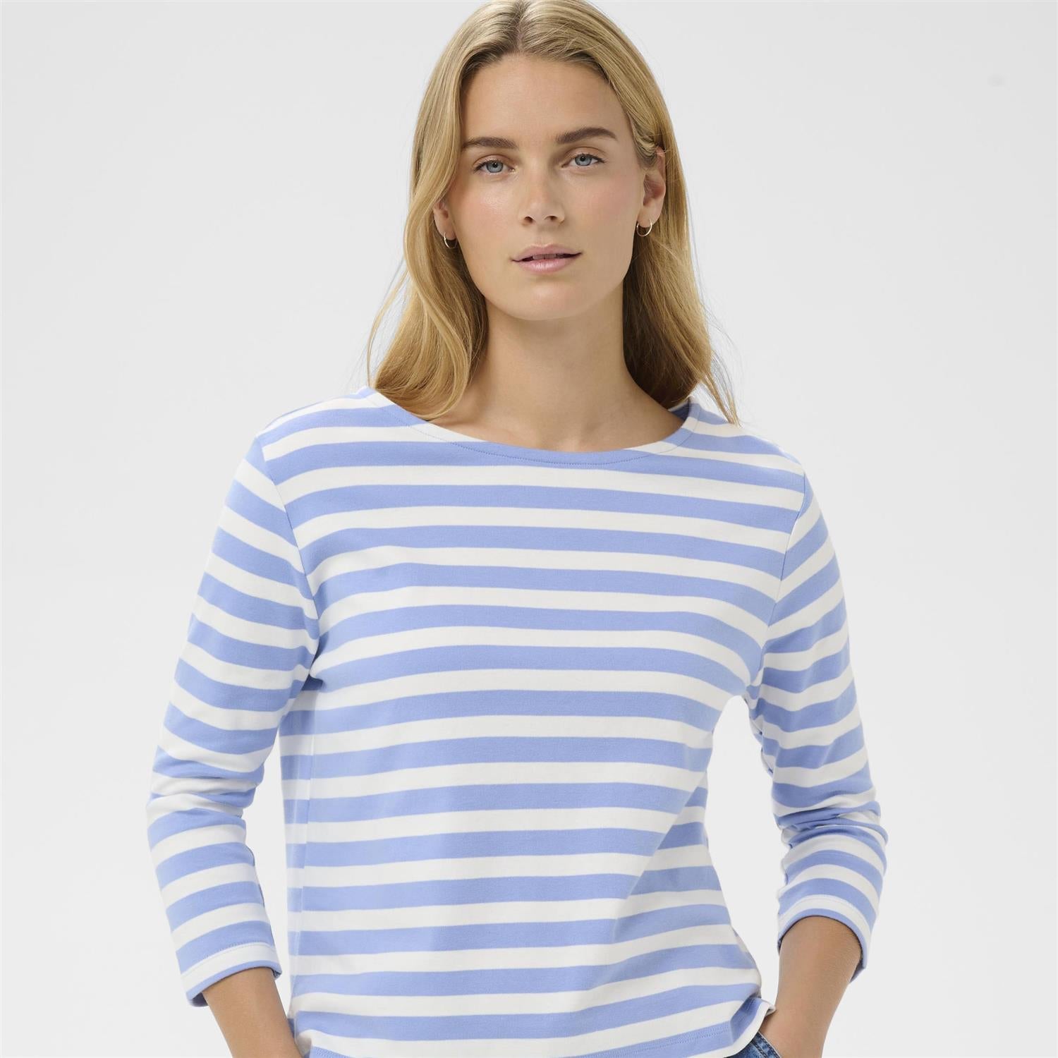 Herlig stripete topp i myk bomull med avslappet passform, trekvartlange ermer og en bred, rund hals. Et klassisk og allsidig plagg som passer perfekt til både hverdag og helg. Style med jeans eller chinos for en uformell stil.
