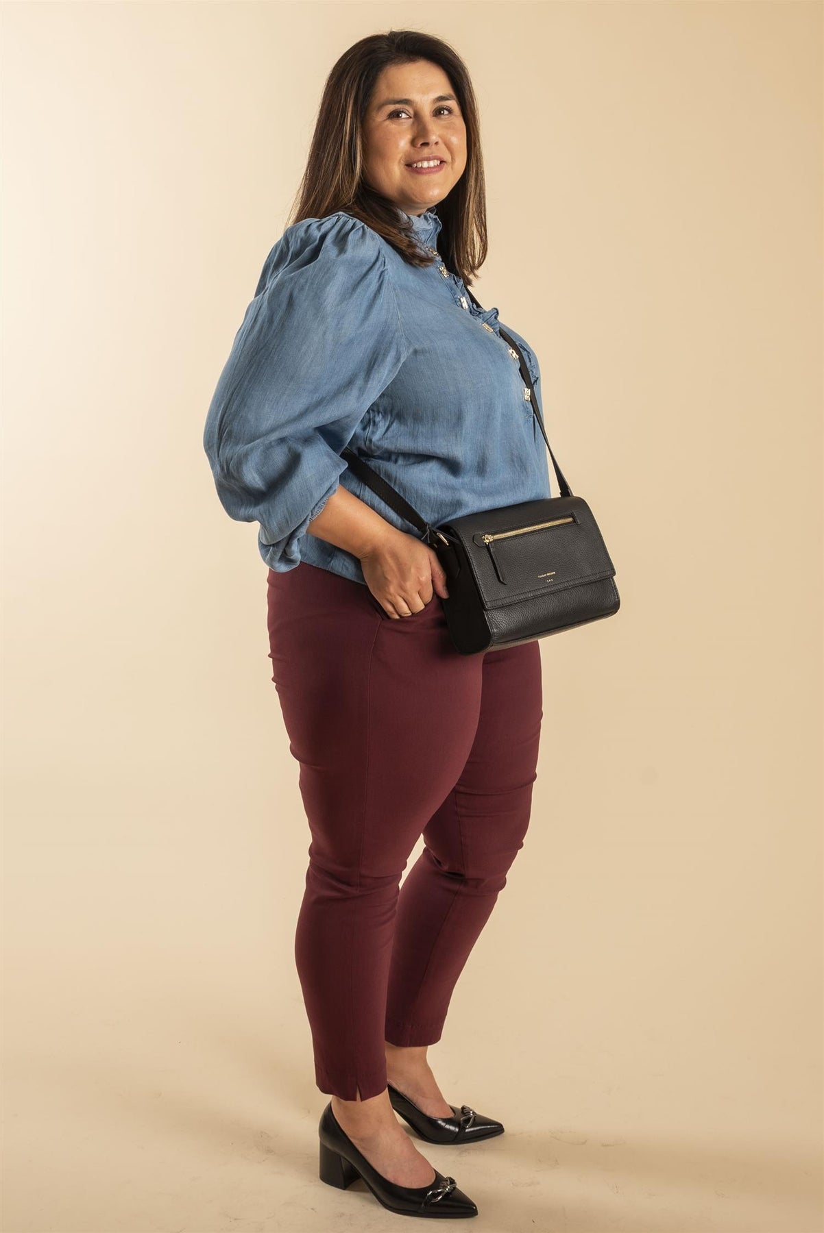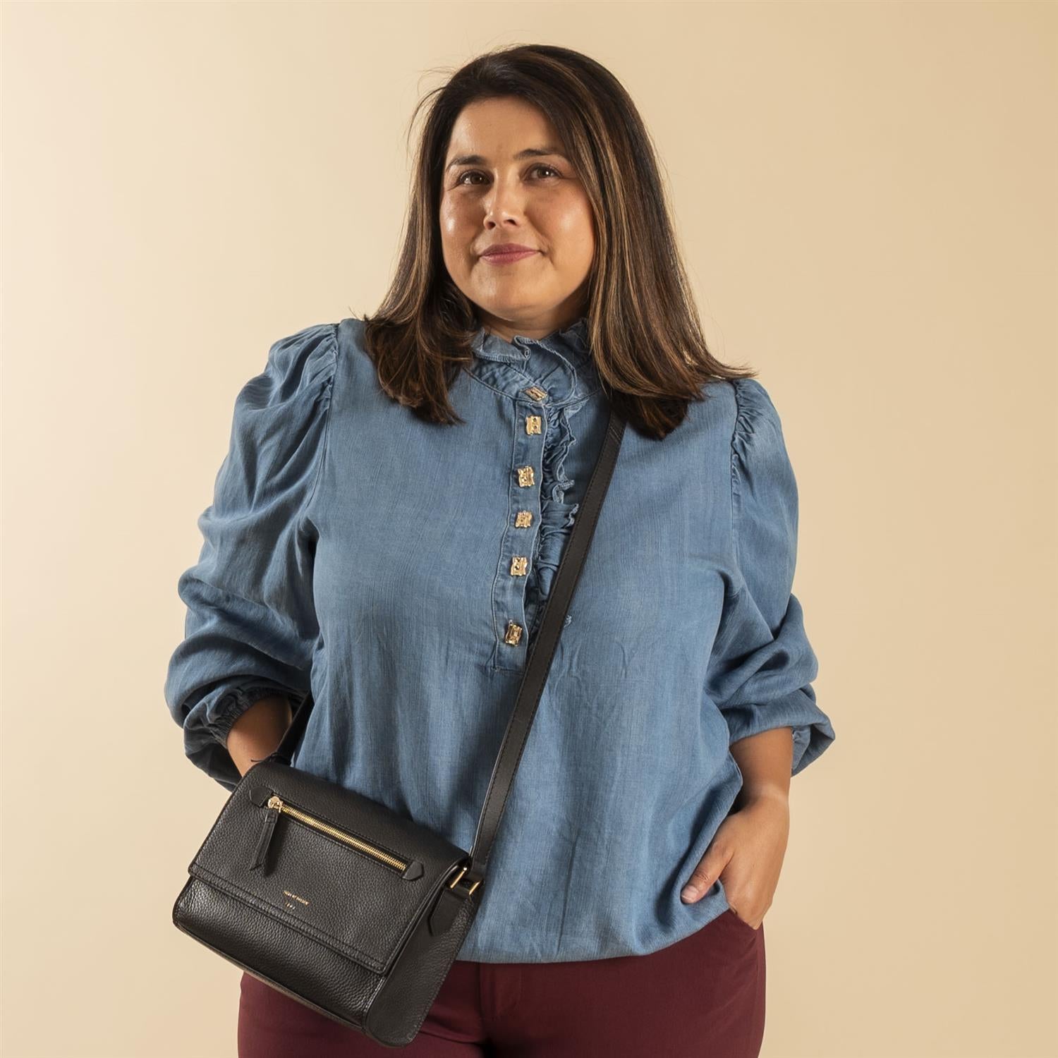 Crossbody-veske i kornete skinn med glatt skinnkant og super størrelse om du ønsker en veske som er litt større enn bare en clutch.