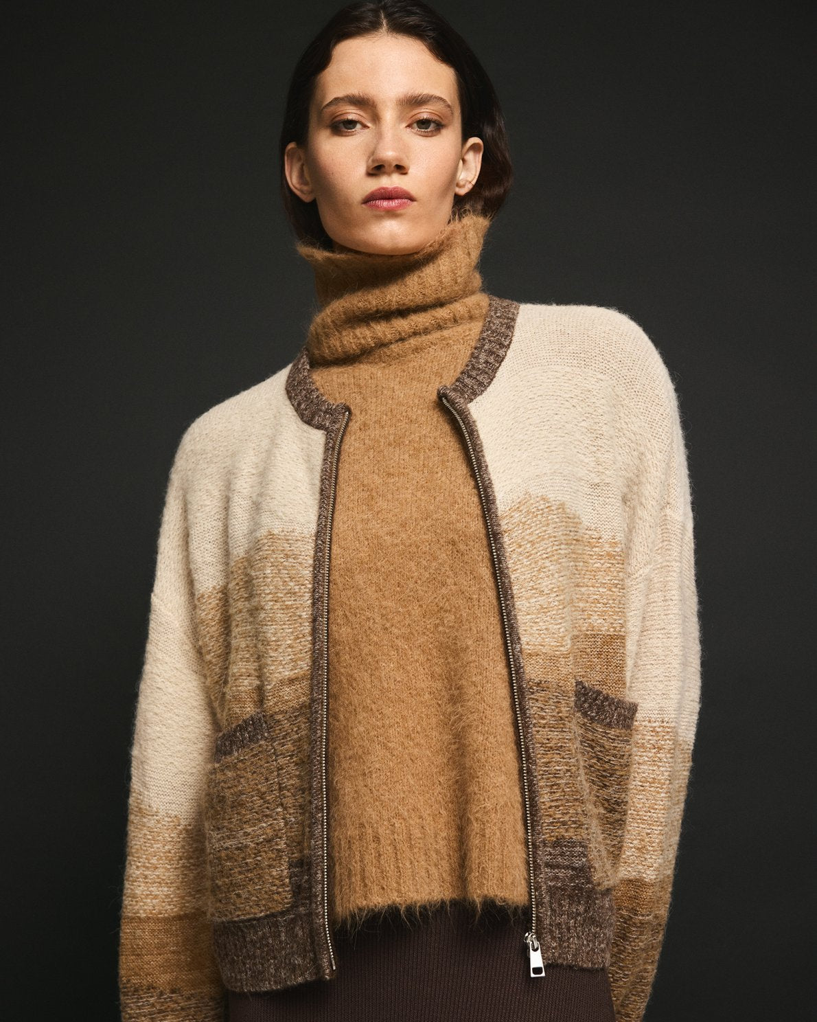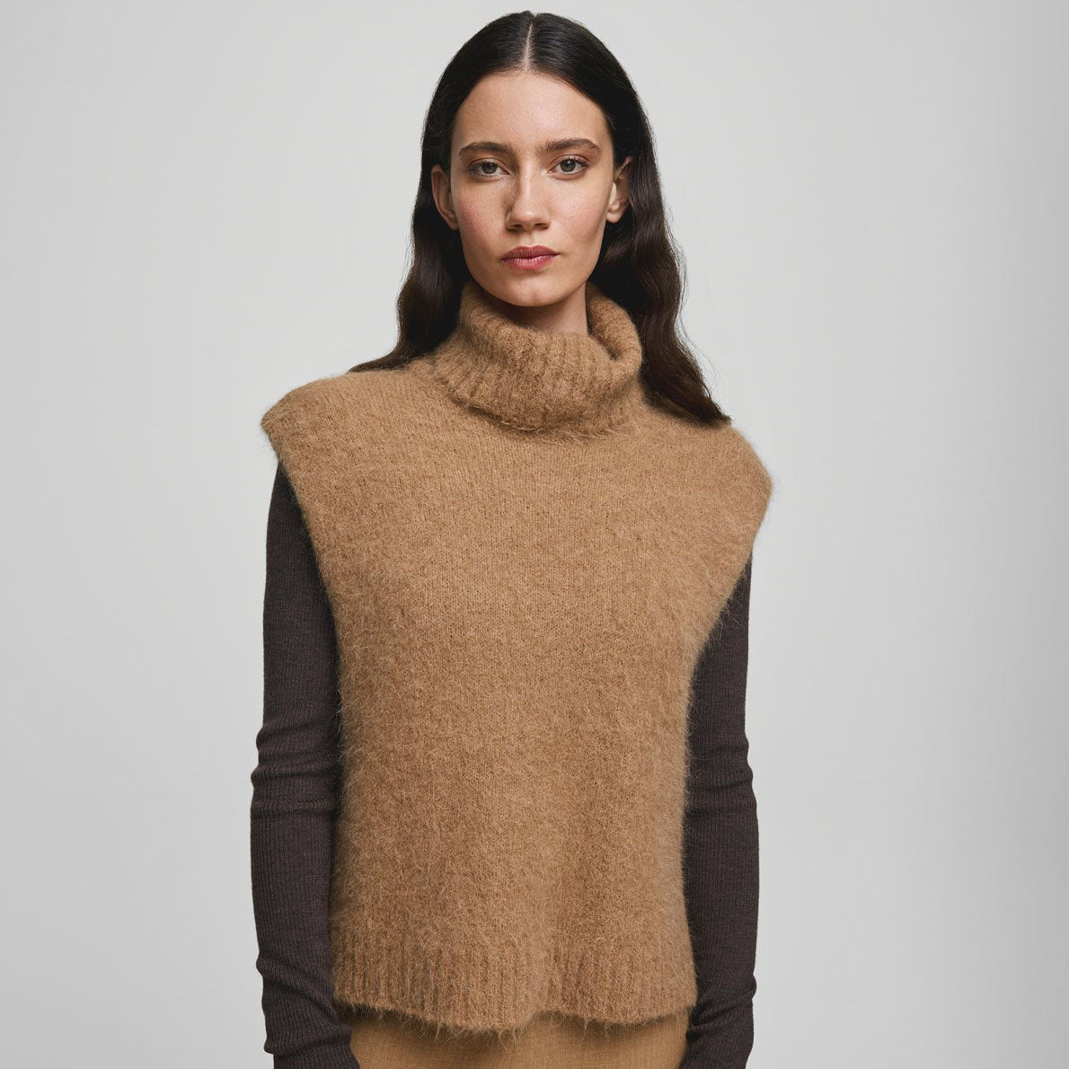 Stilig vest i rett modell, uten arm med høy hals. Den er laget i en myk, fluffy alpakkamix.