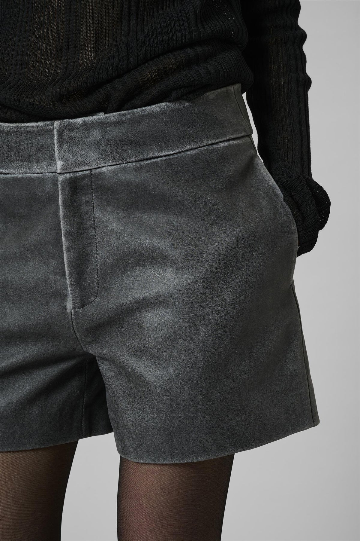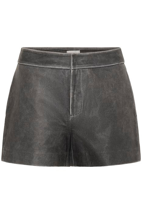 Bibi Leather Shorts - Medium Grey Retro Wash