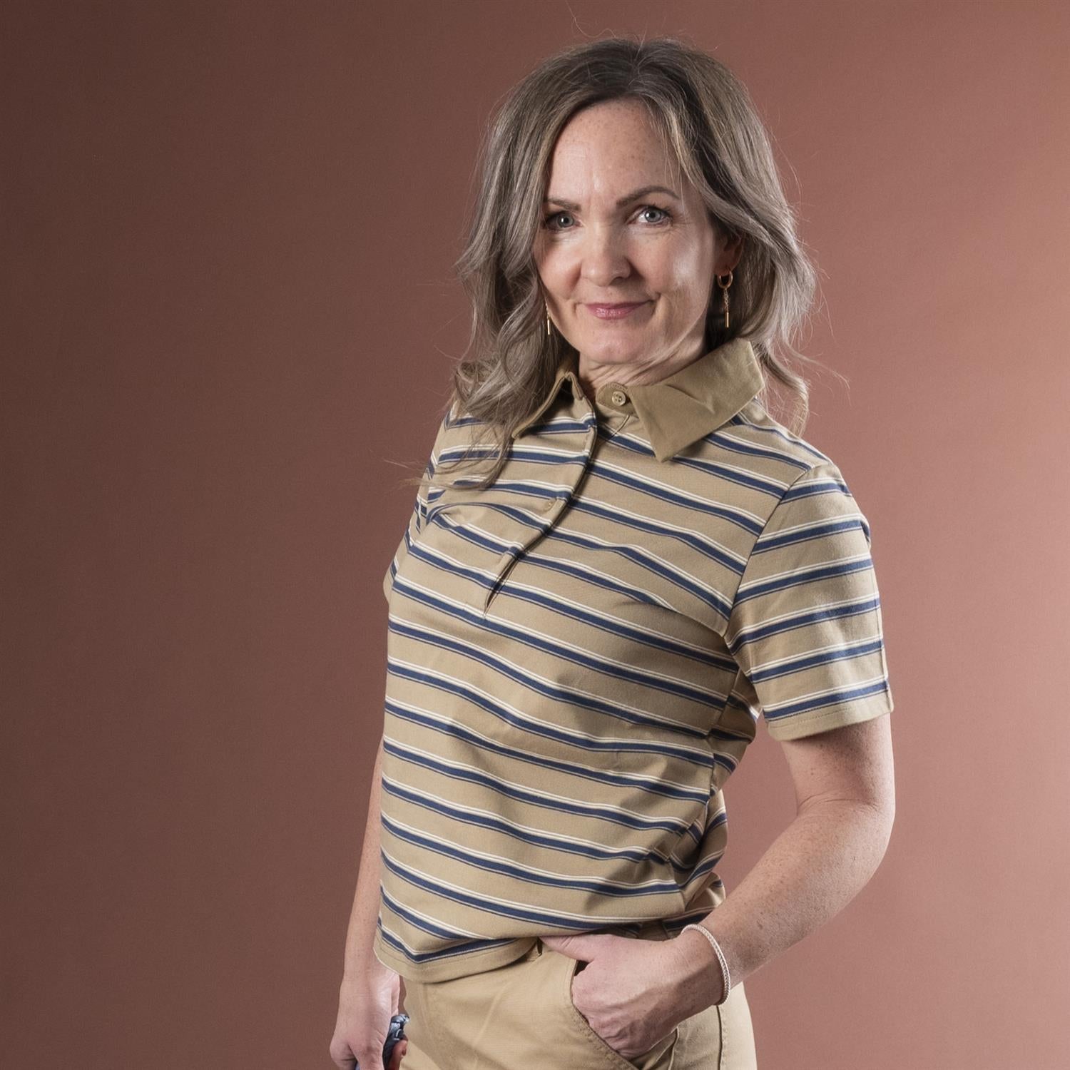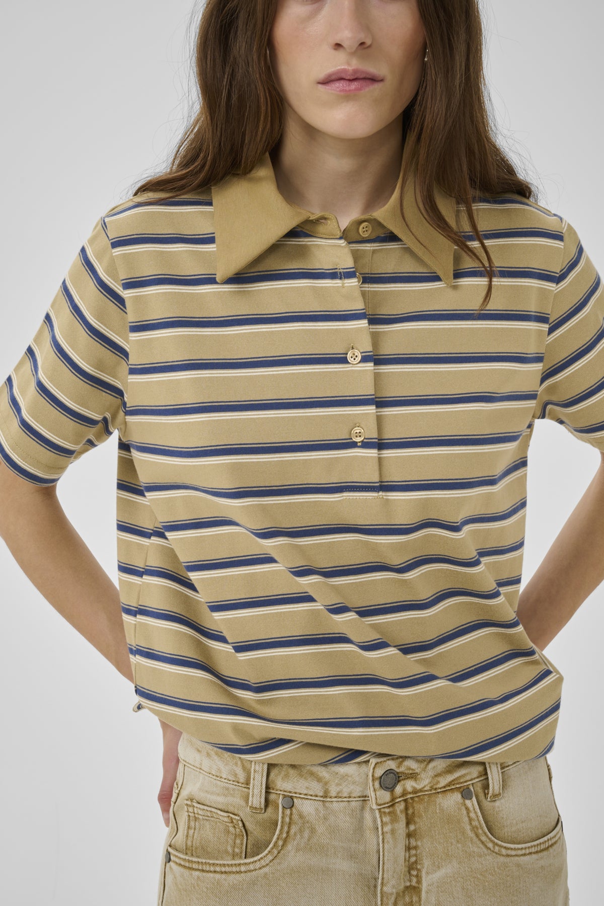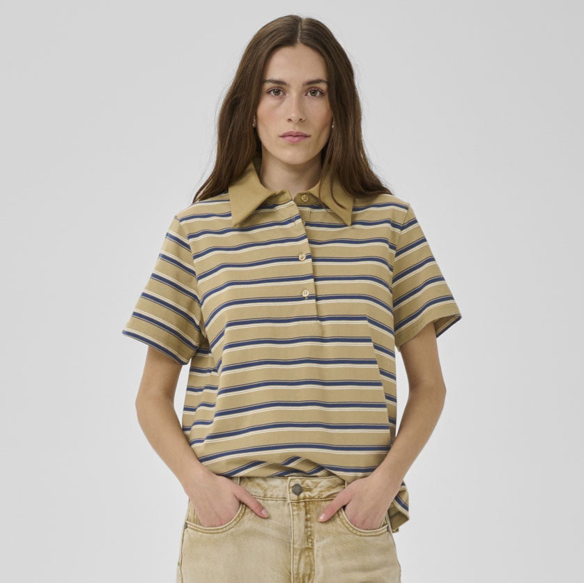 Asla Polo Tee - Light Capers Striped