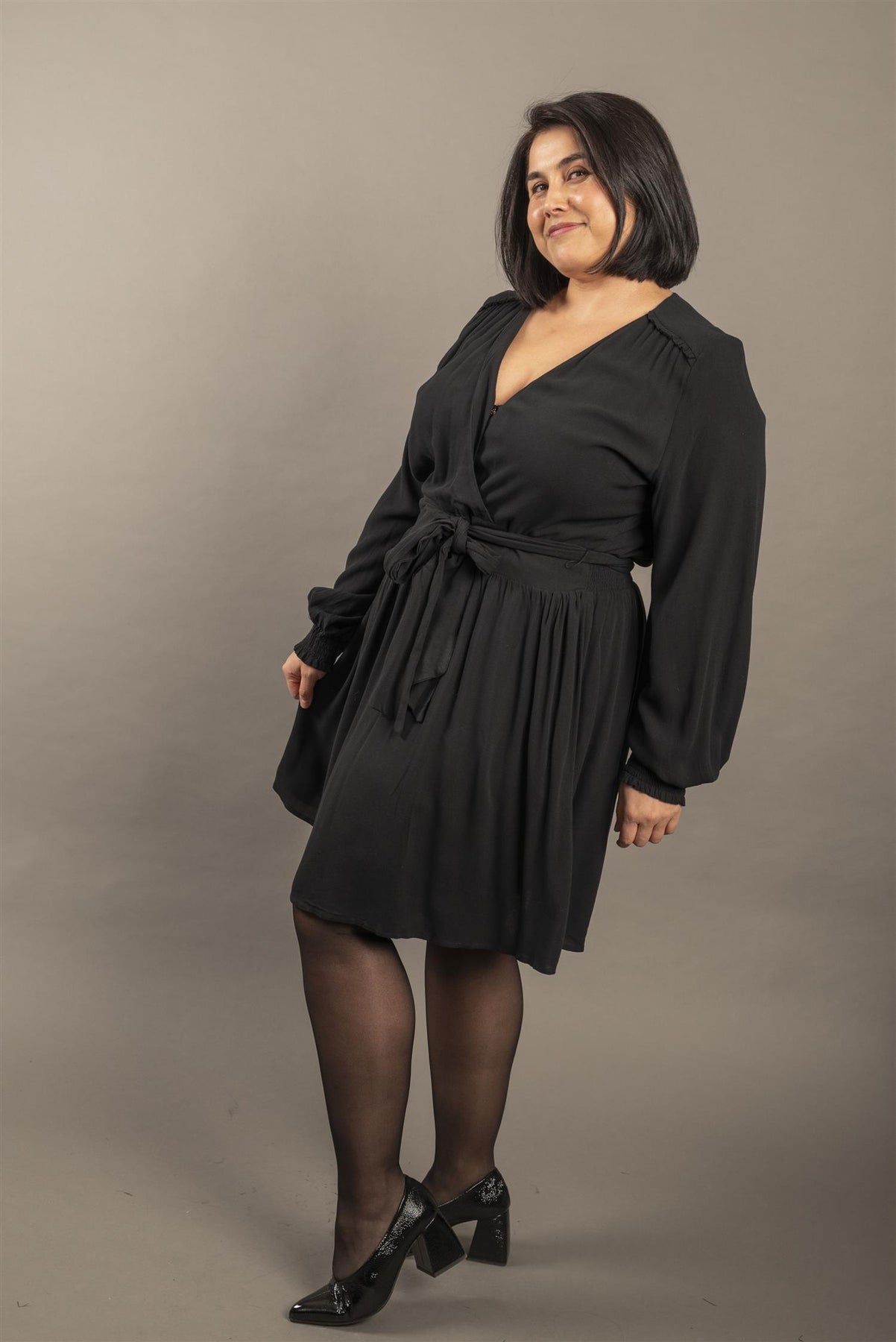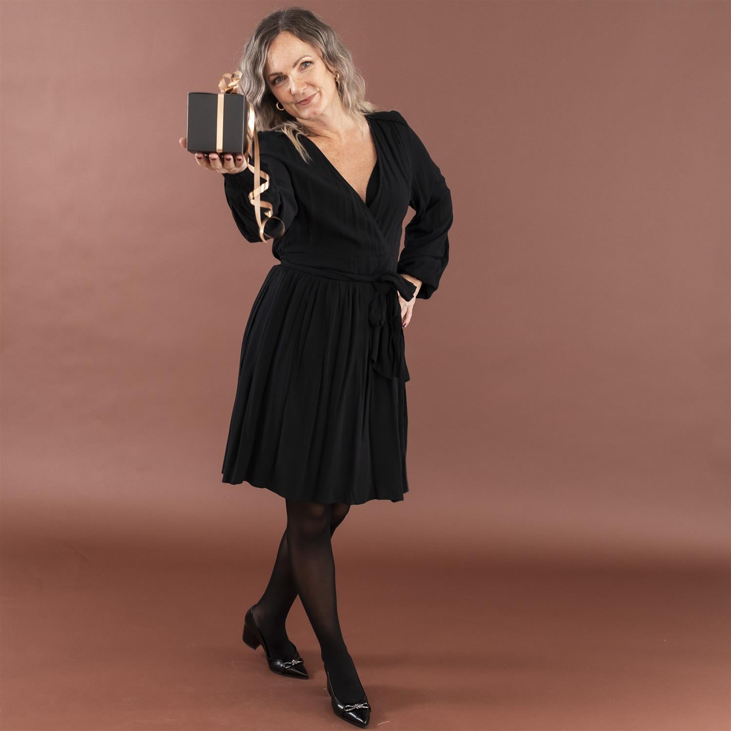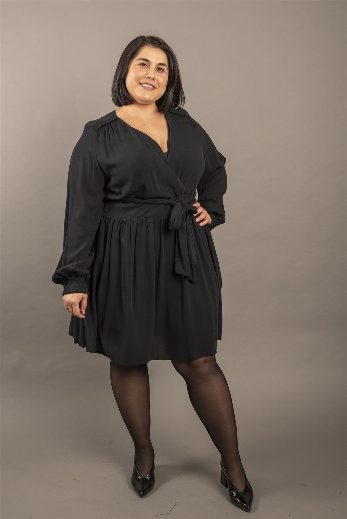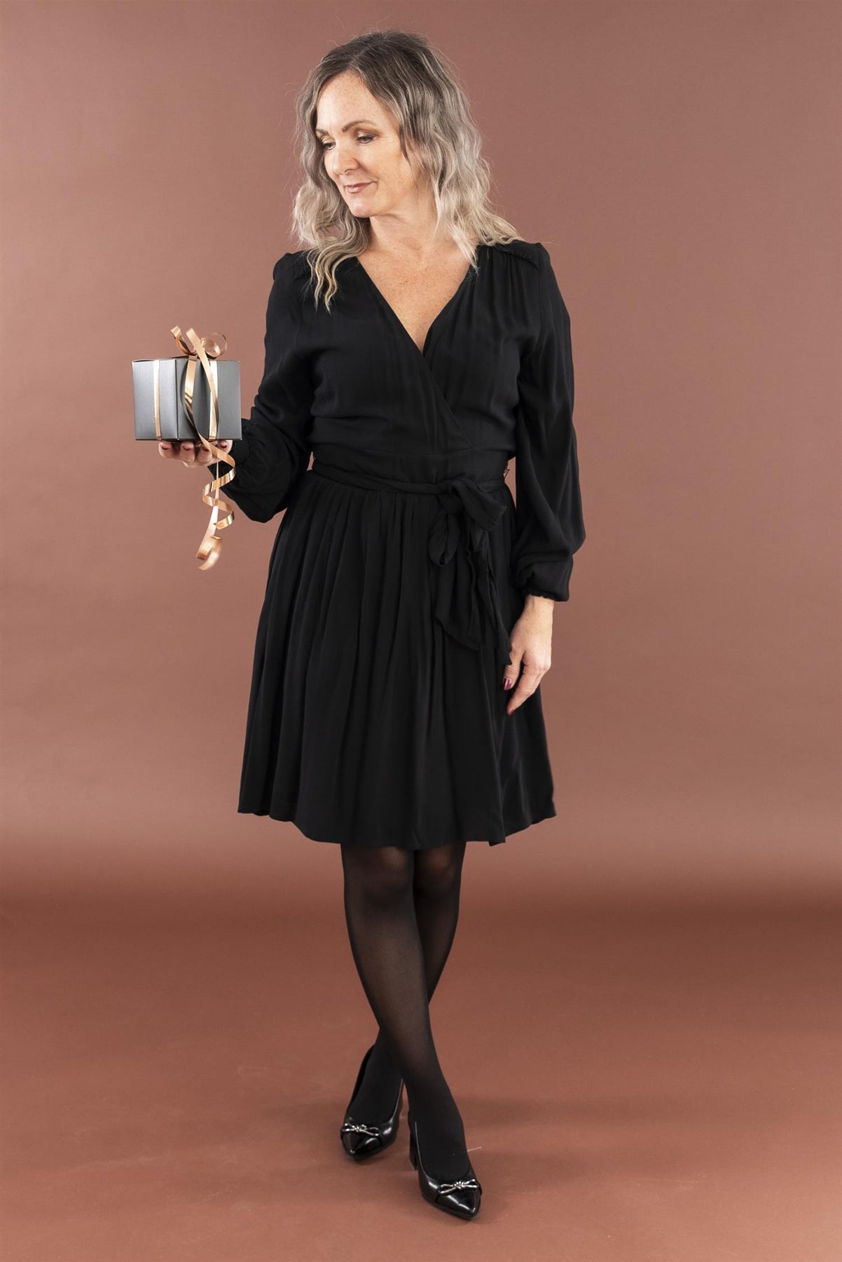 Klassisk omslagskjole i helt sort med lange ermer. Kun tilbehøret som bestemmer anledningen her, for denne kan virkelig brukes til så utrolig mye! Praktisk med lange ermer på vinteren.