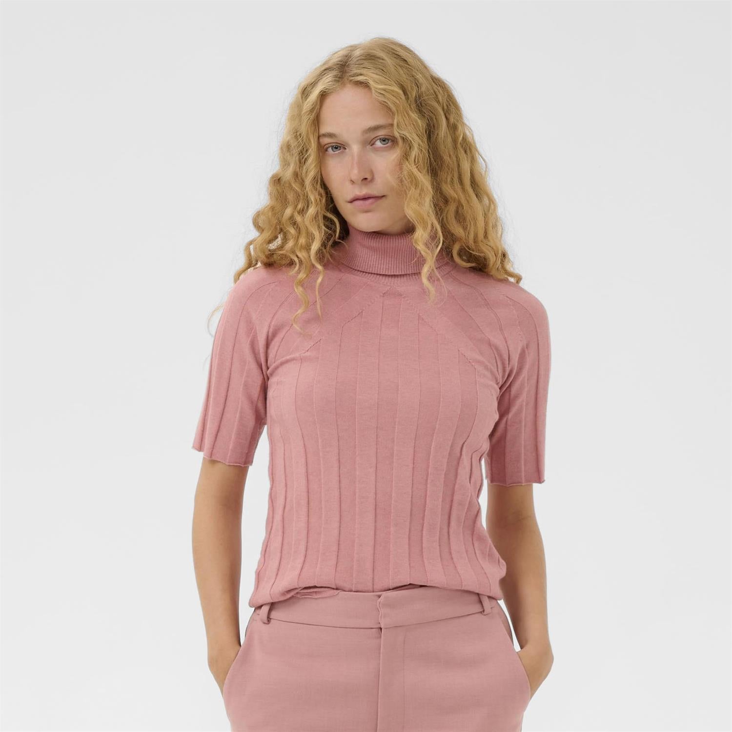 Myk og feminin polo i dus rosa med raglan og korte ermer, som løfter antrekket med tidløs eleganse. Denne genseren er laget i en myk og varm blanding, som gir god form, komfort og en luksuriøs følelse mot huden.