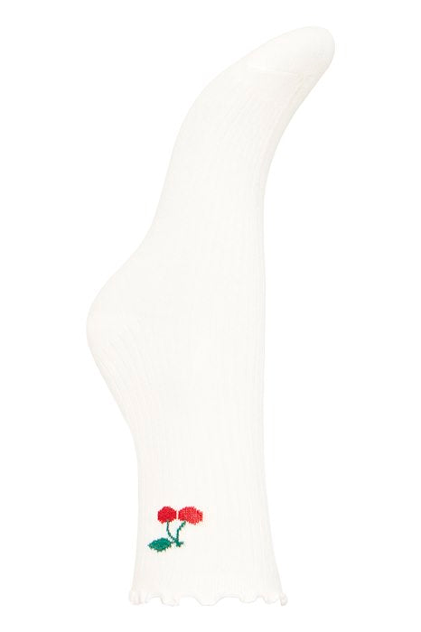 Supersøte sokker med pen avslutning og broderte kirsebær.