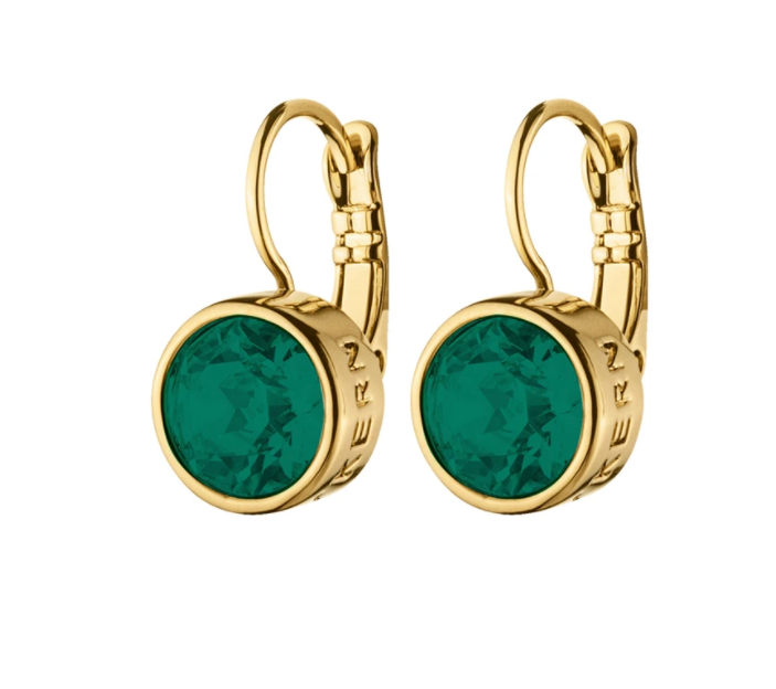 Fransk krok øredobber i en polert gulltonet finish og med en grønn Swarovski i en elegant boksinnstilling. Med fransk kroklukking.