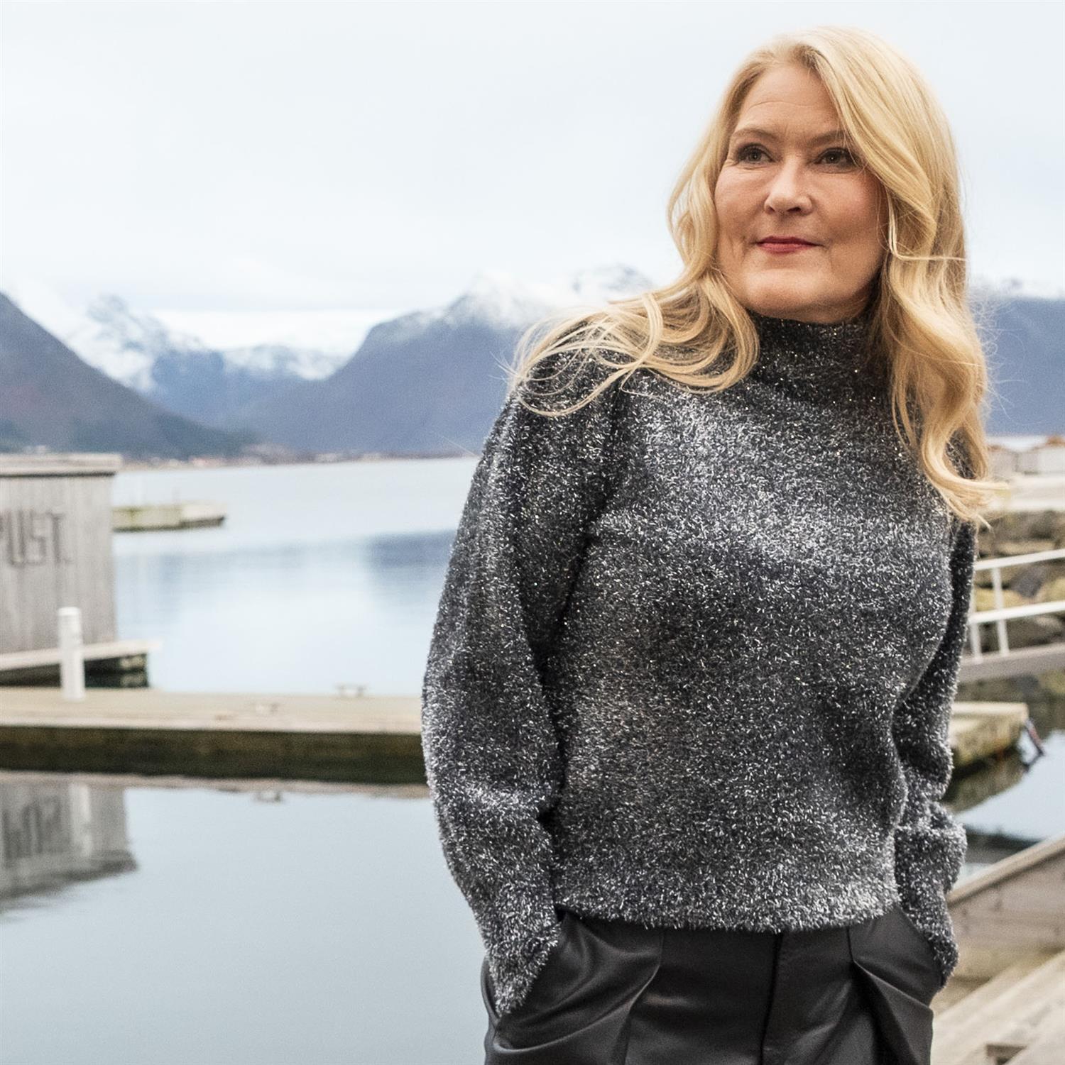 Fluffy genser som tar garderoben til fest! Teksturert, diskré glitrende overflate, rett passform, høy hals og lange, voluminøse ermer med ribbestrikkede mansjetter.