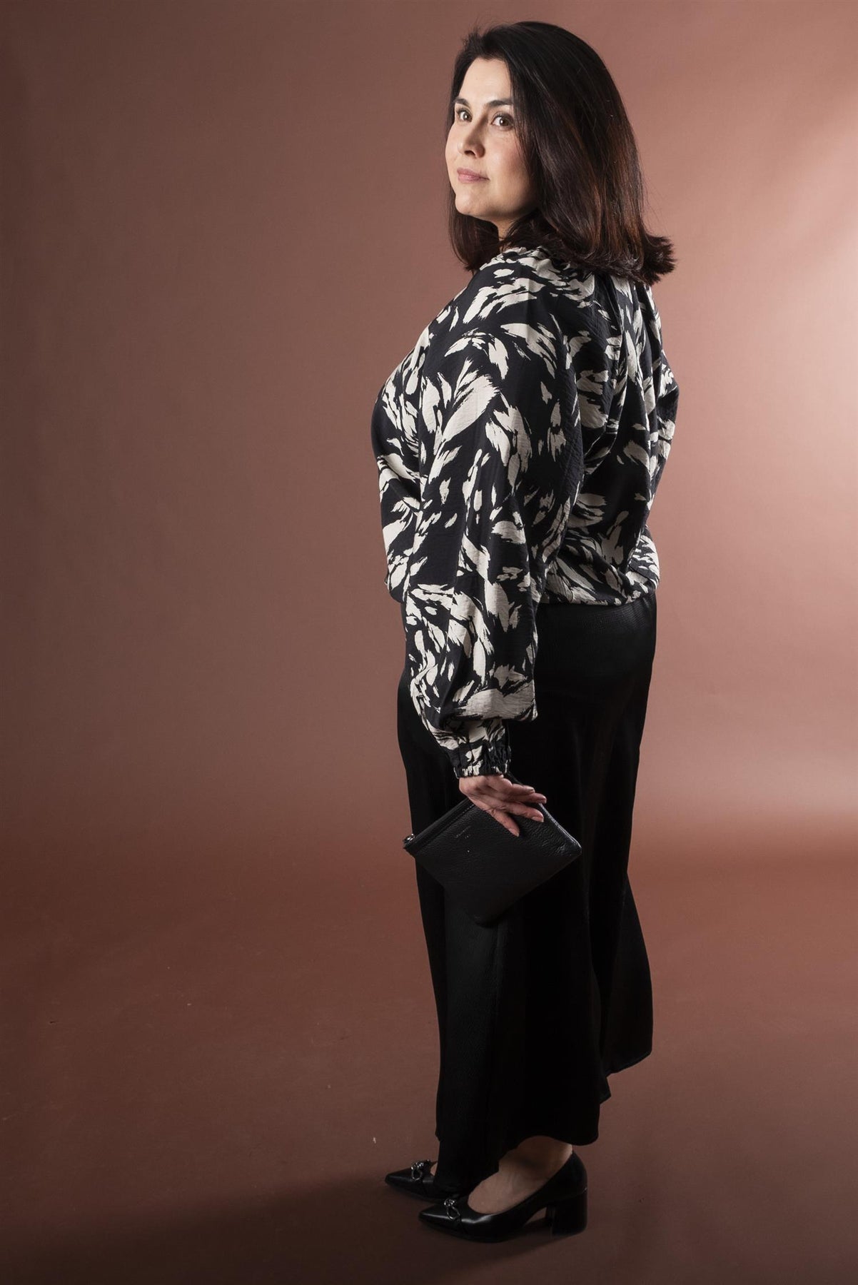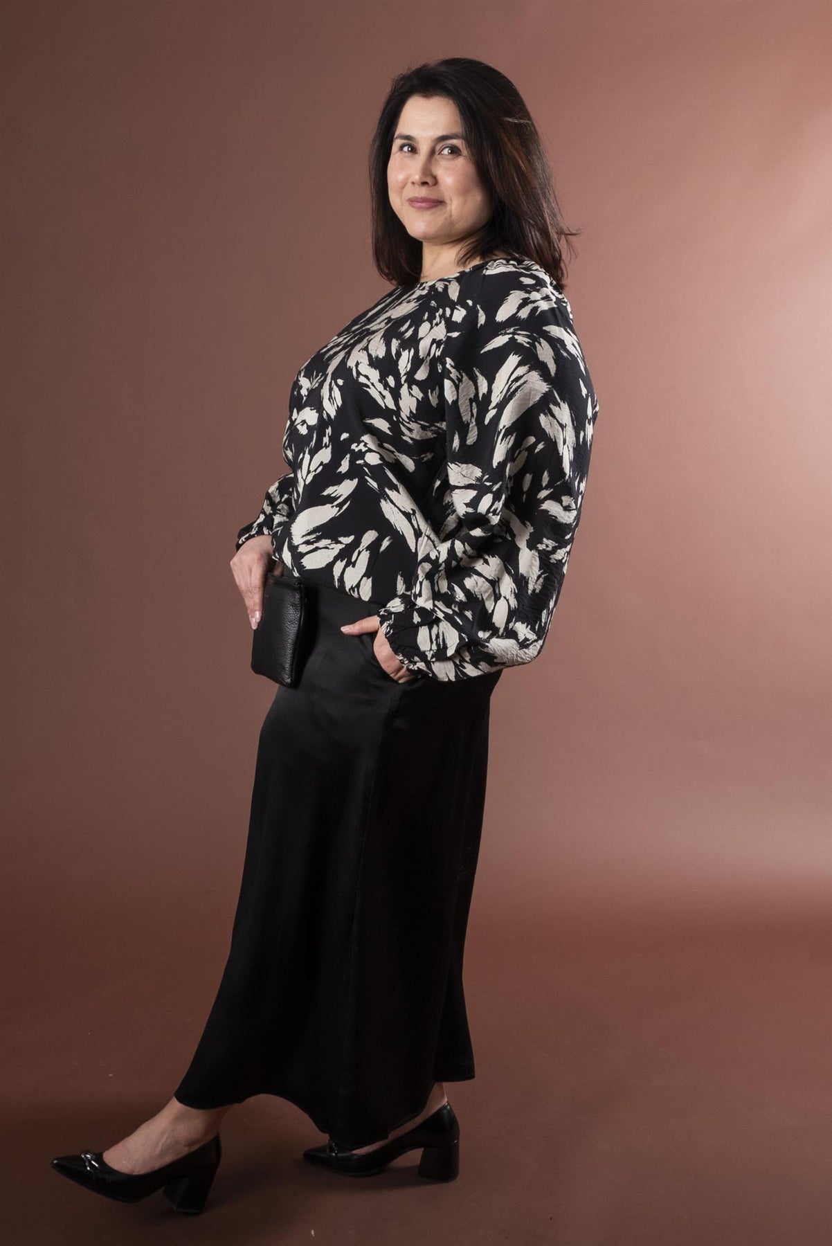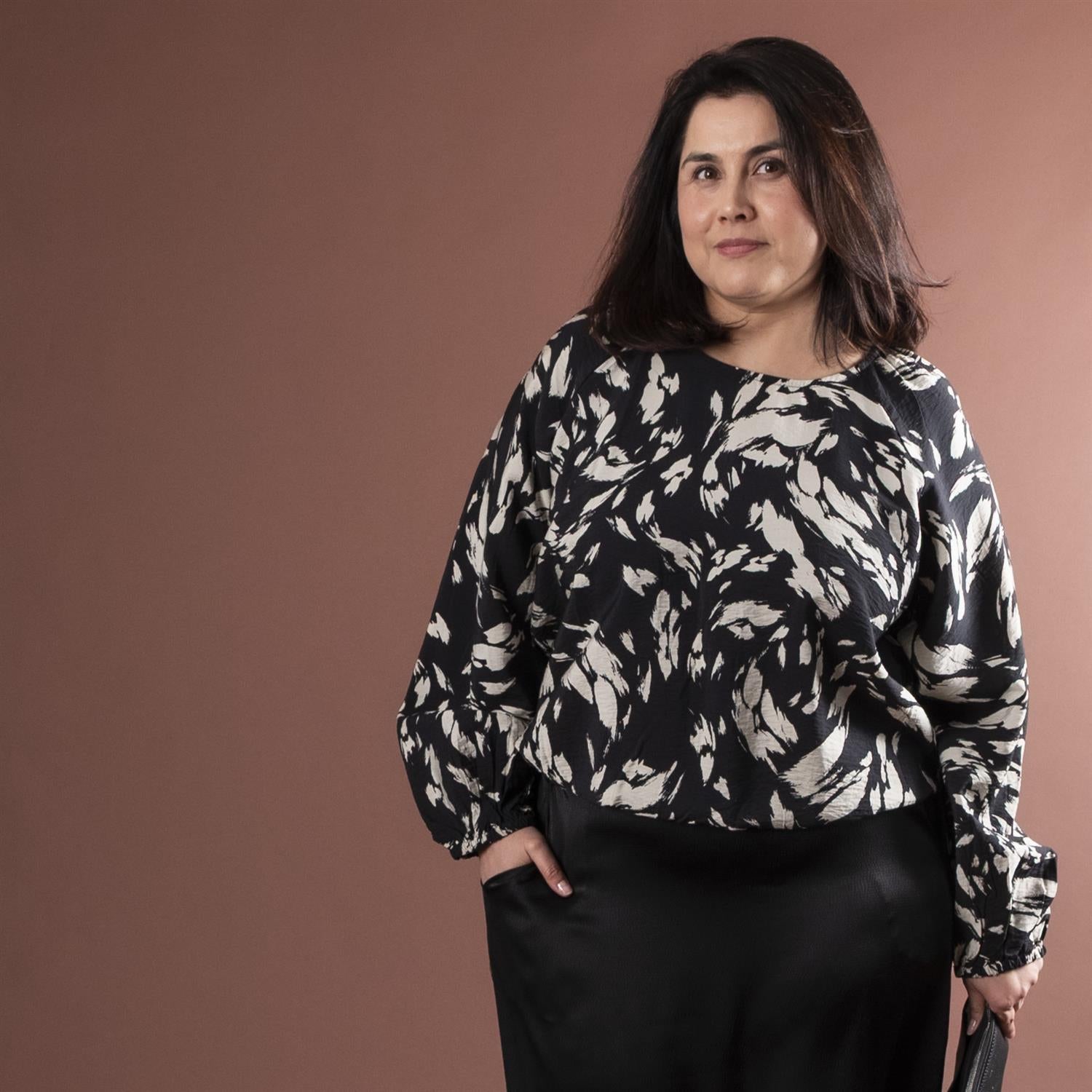 Mønstret bluse i lekker og ledig passform, rund hals og voluminøse raglanermer med innstrammet mansjett.