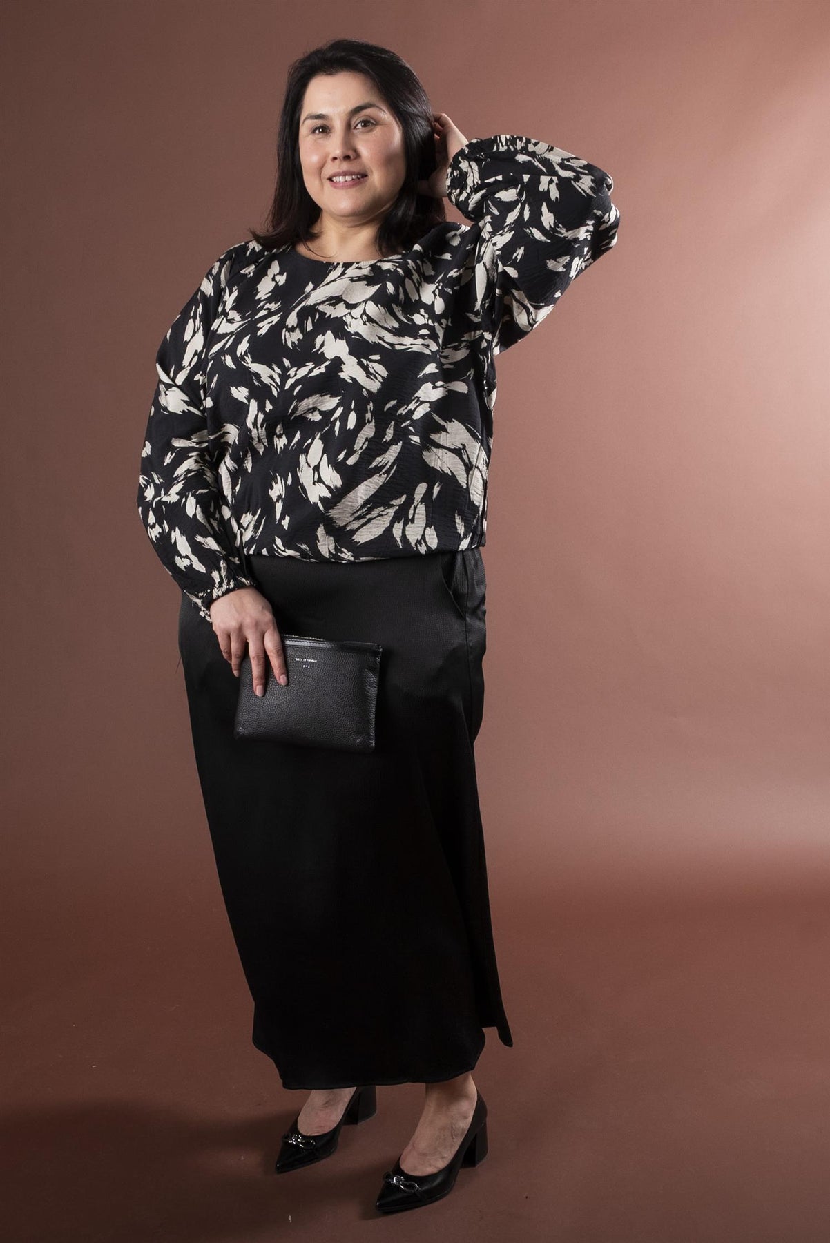 Vår egen modell er 165 cm og har str. 44. Skjørtet er KCdina fra Kaffe Curve.
