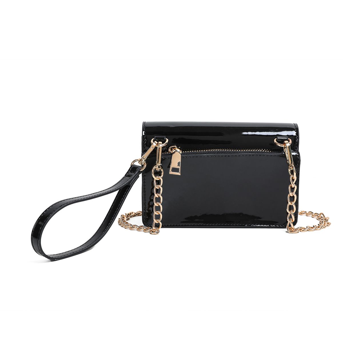Lekker og trendy selskapsveske i lakk. Vesken er i imitert skinn. Den lukkes med flip og lås og det følger med en avtagbar lengre lenke.