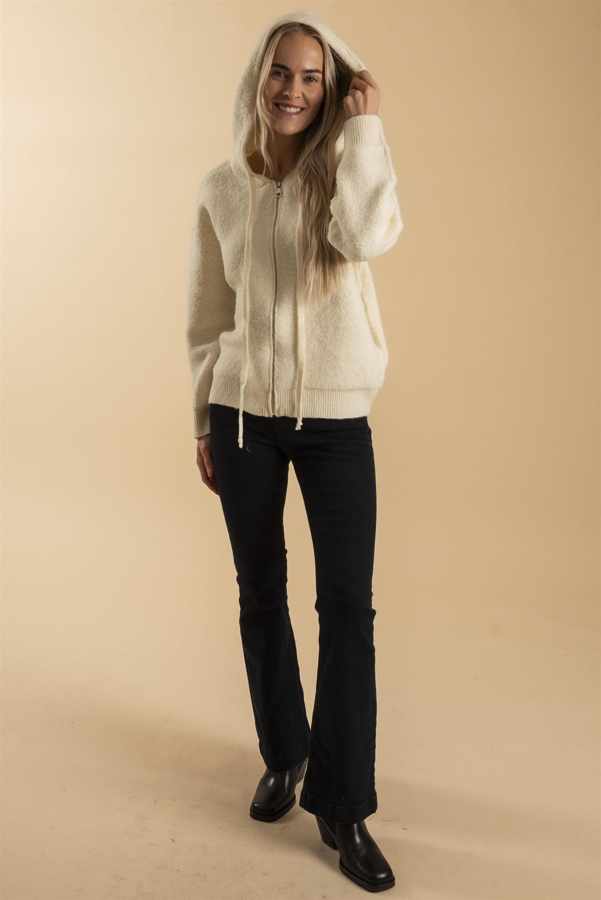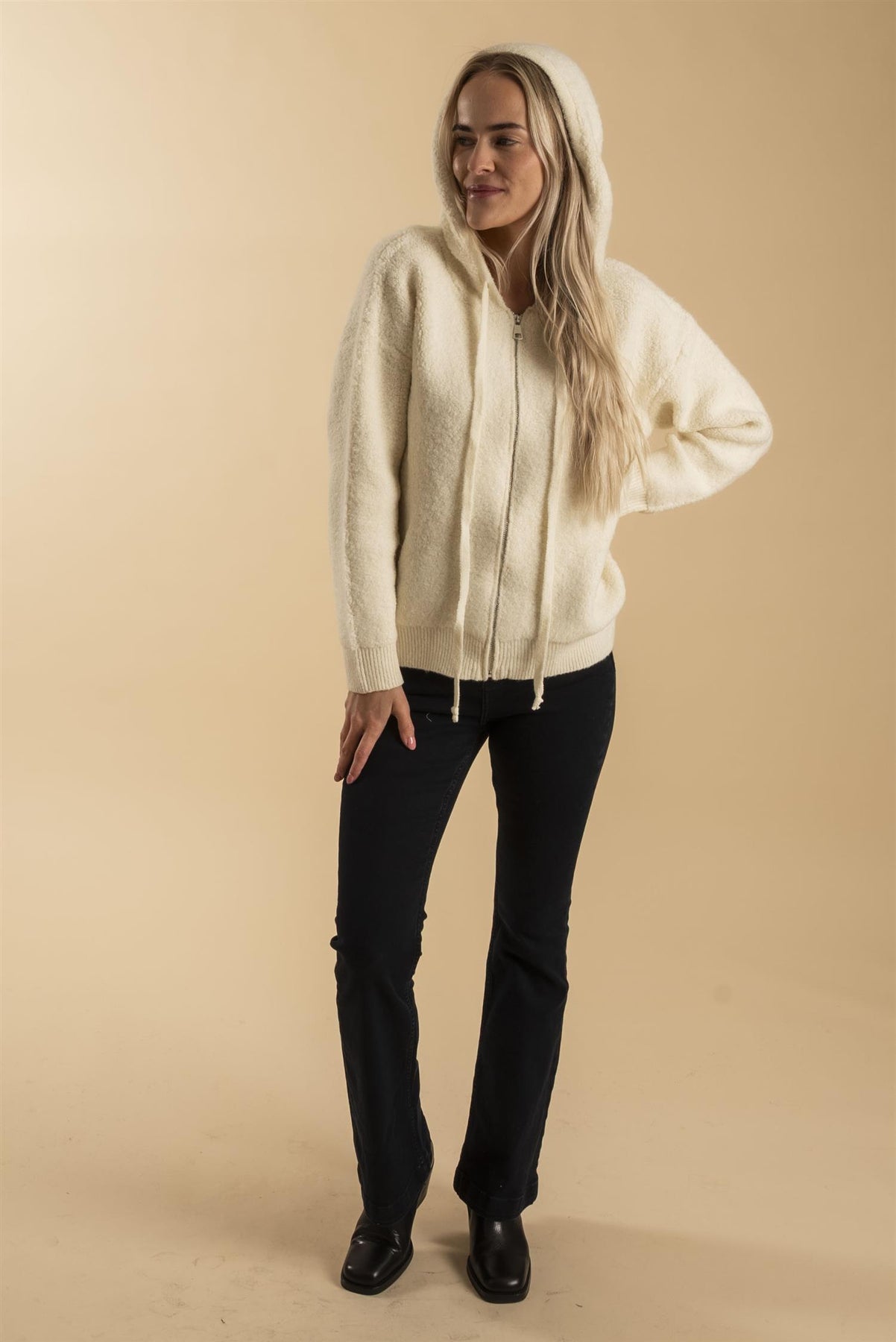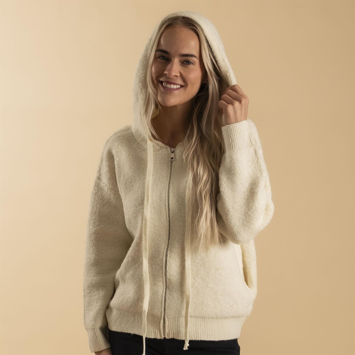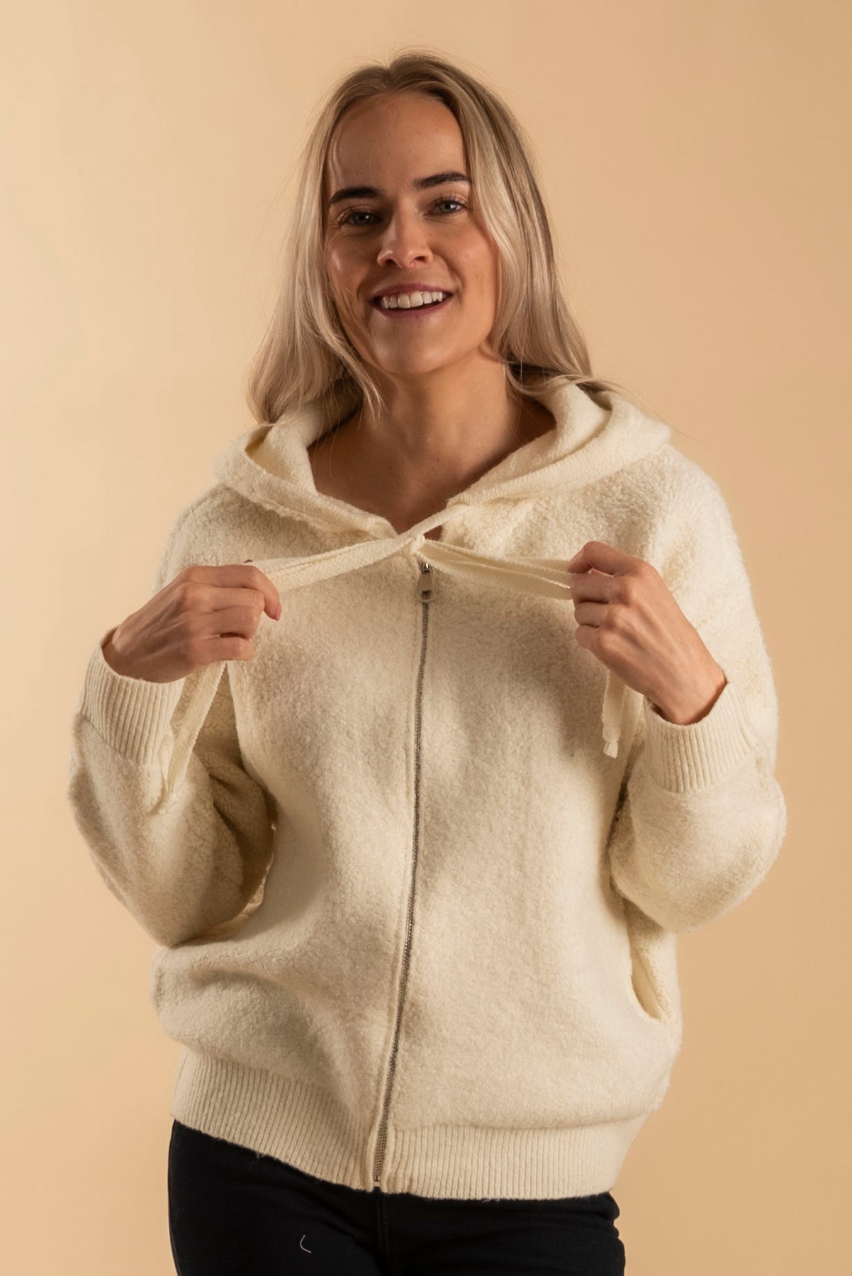 Superkoselig teddyjakke med sporty look og hoodie. Glidelås i fronten og deilige lommer.