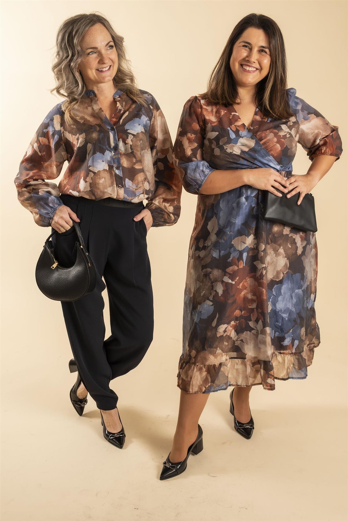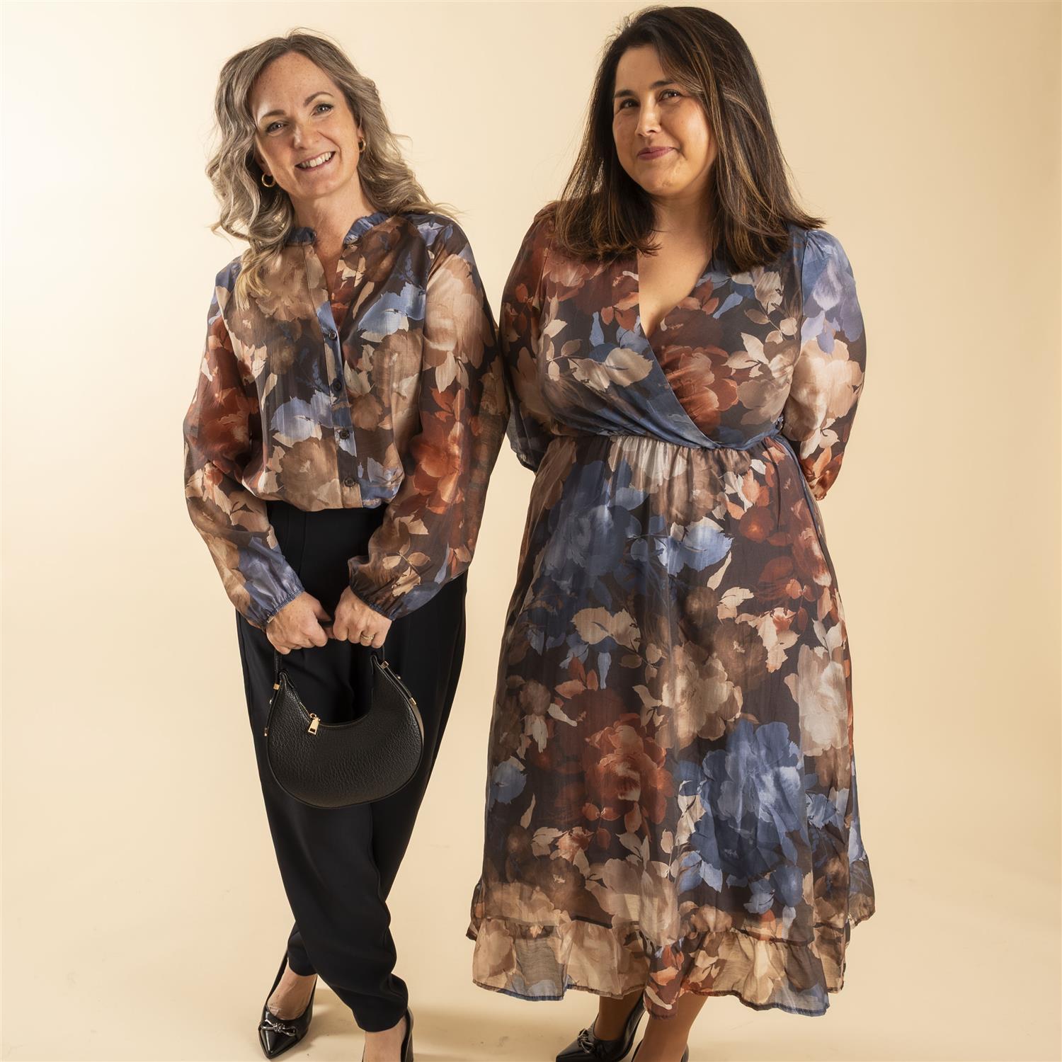 Vakker kjole i delikat viscose med helt nydelig print og fargekombinasjon.
