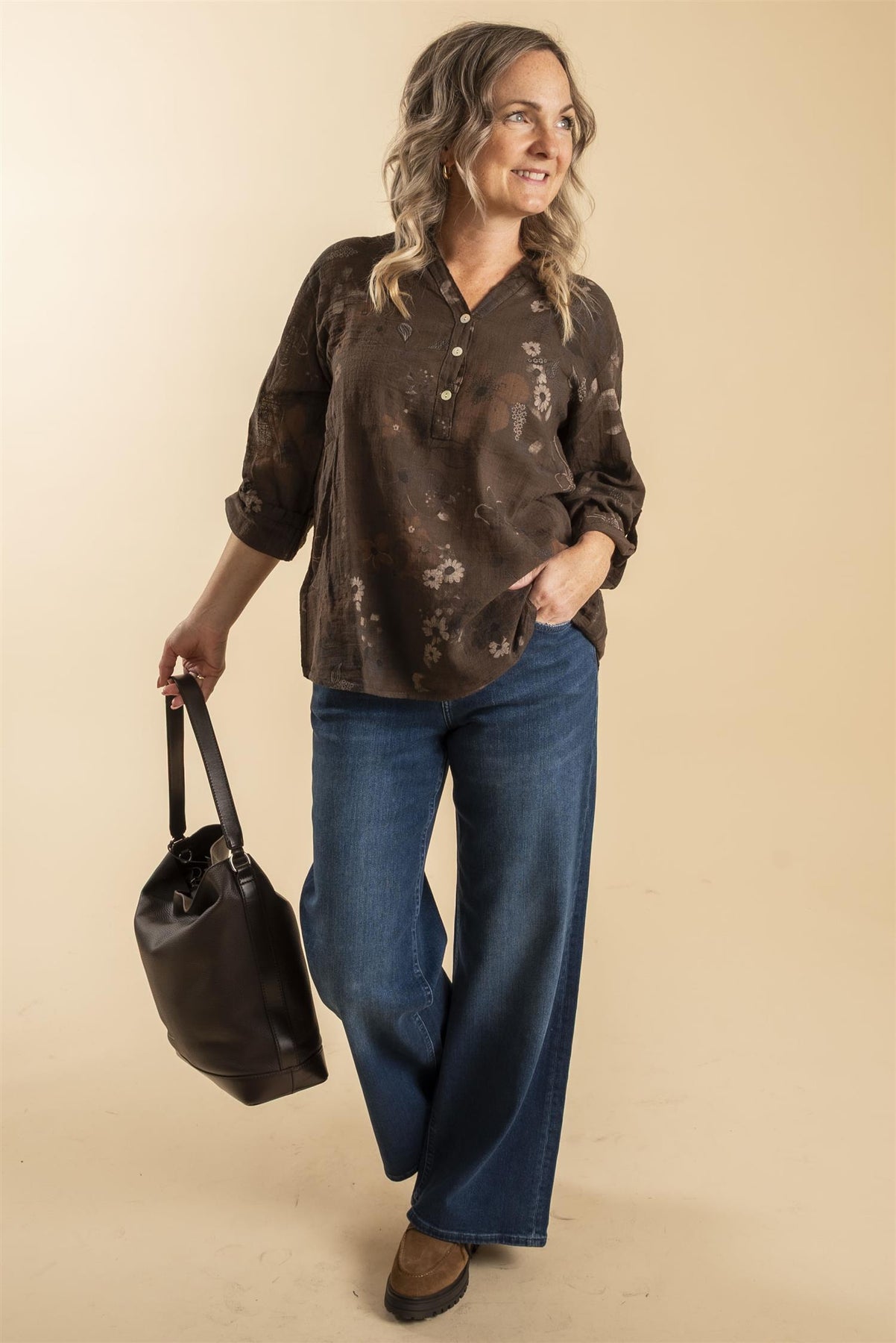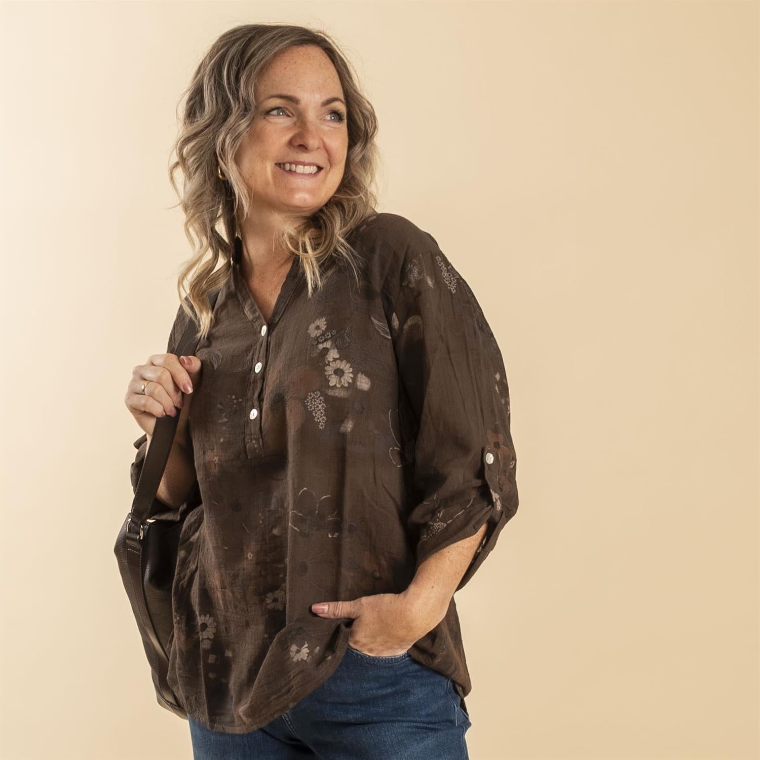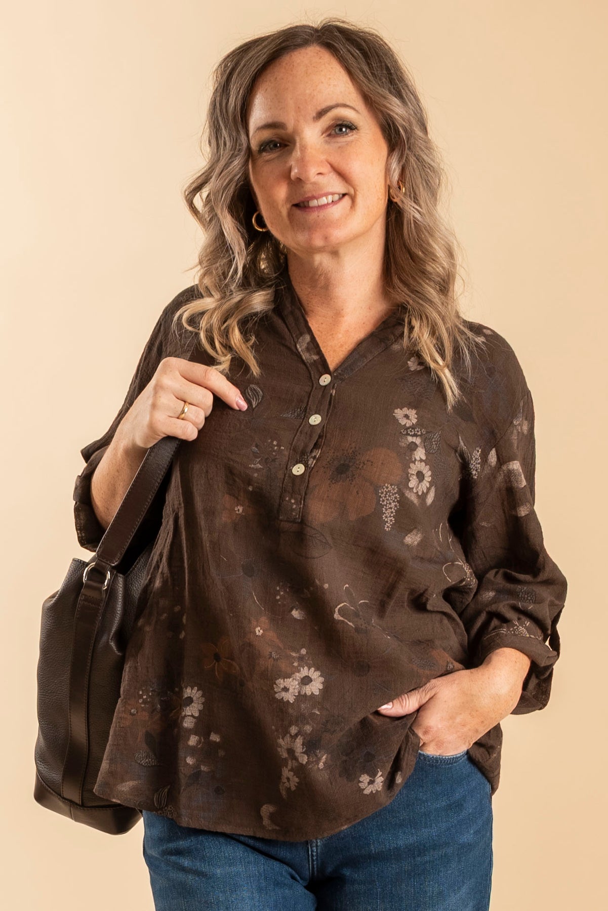 Stødig og kraftig bluse i ren bomull med populær passform og delikat blomster print.
