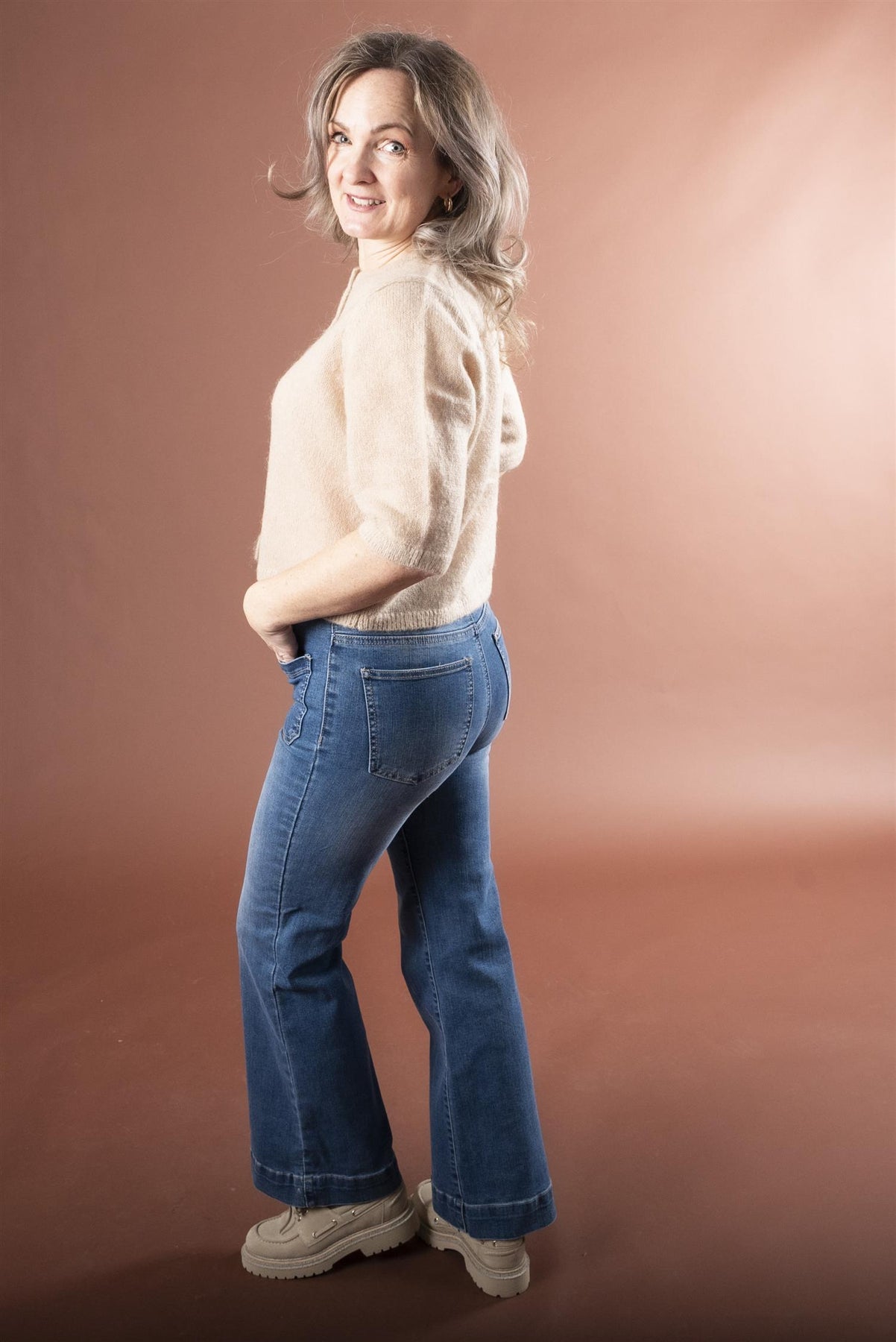 Vår egen modell er 164 cm og har str. S. Jeansen er Anniken fra Floyd.