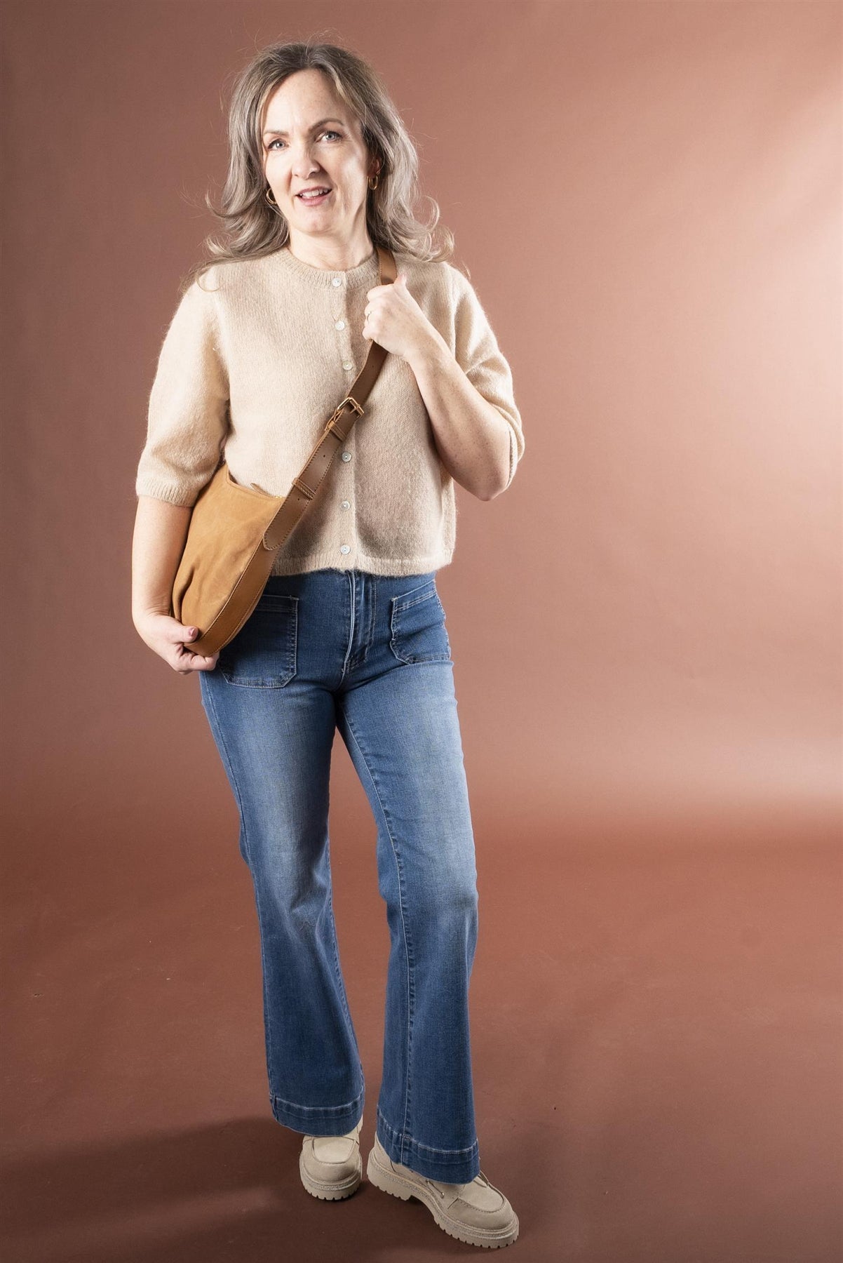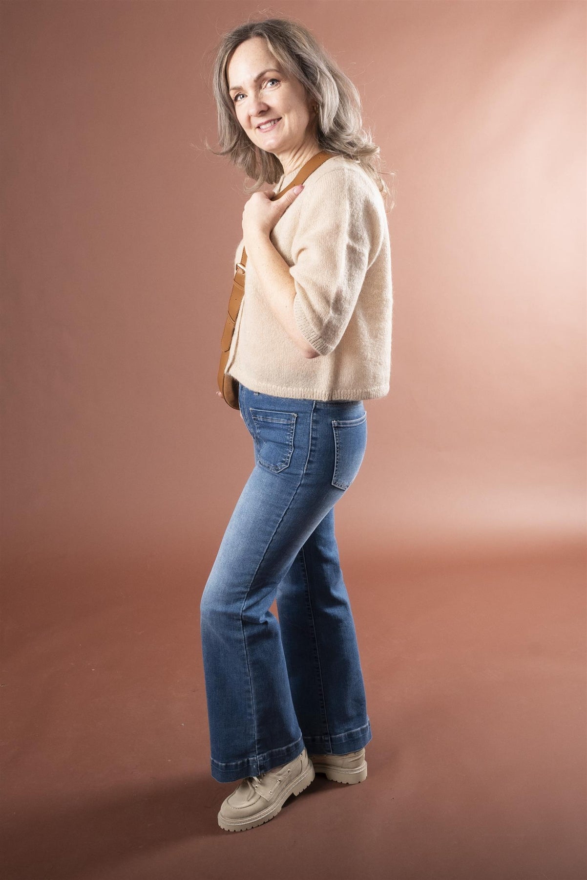 Kombiner til en høy jeans for et stilig og komfortabelt antrekk!