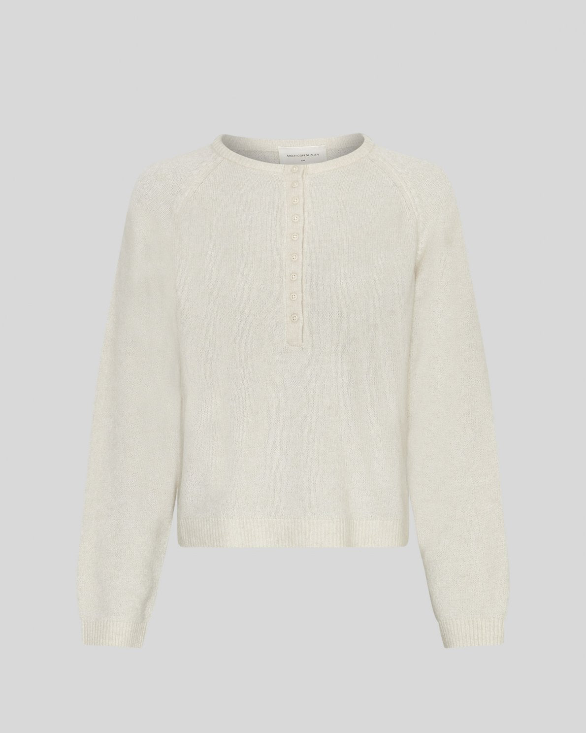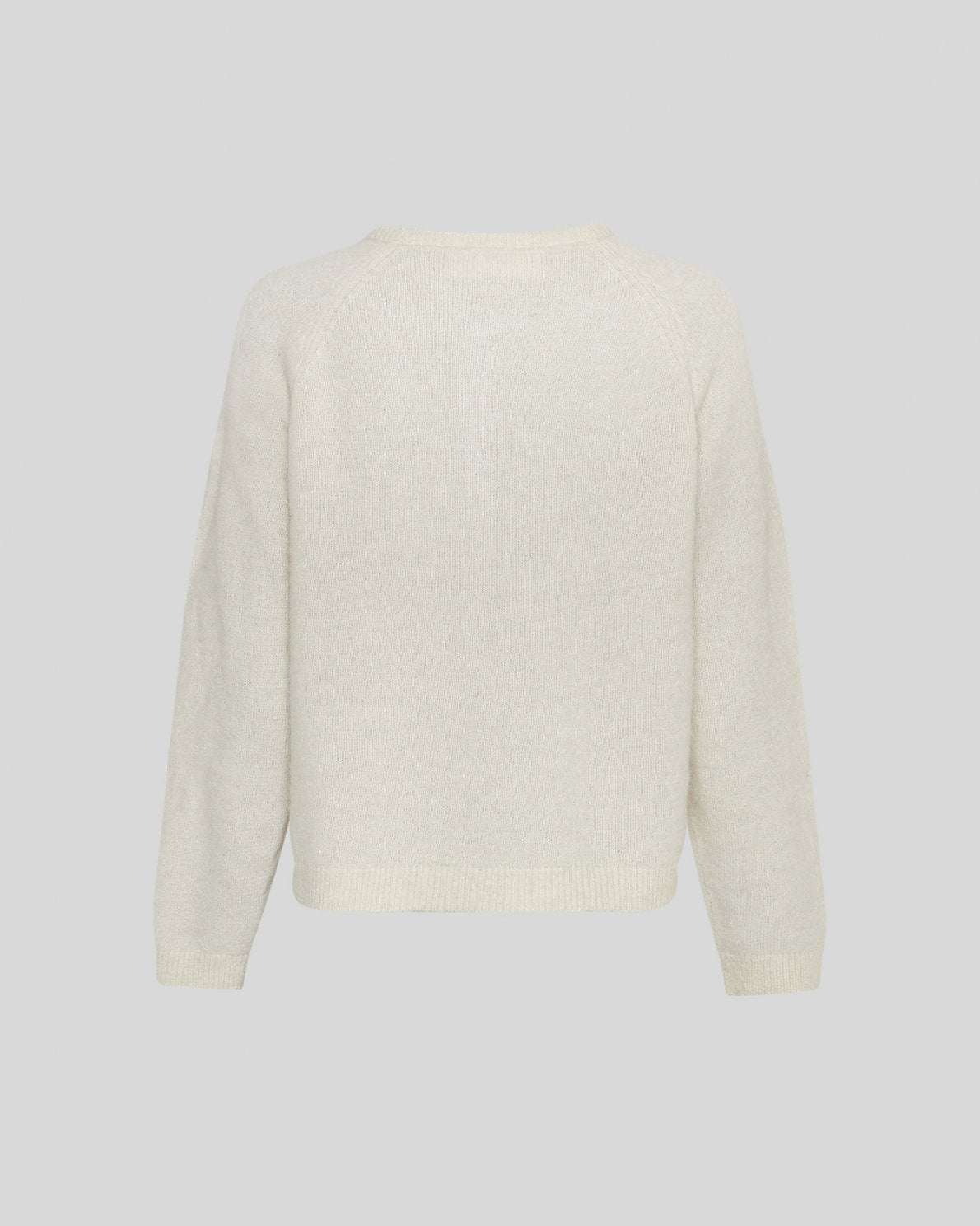 Modellen har raglanermer og ribbekanter i halsen, ermene og nederst.