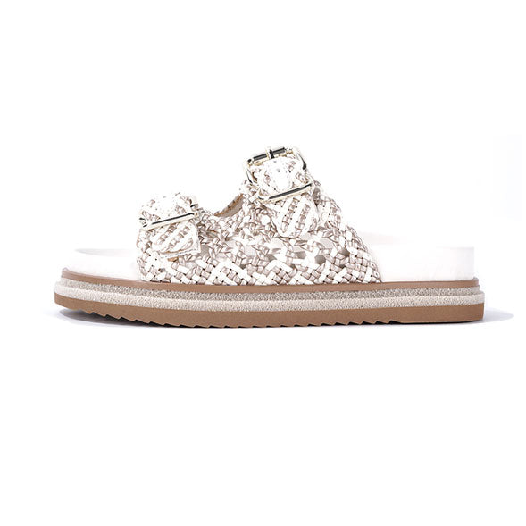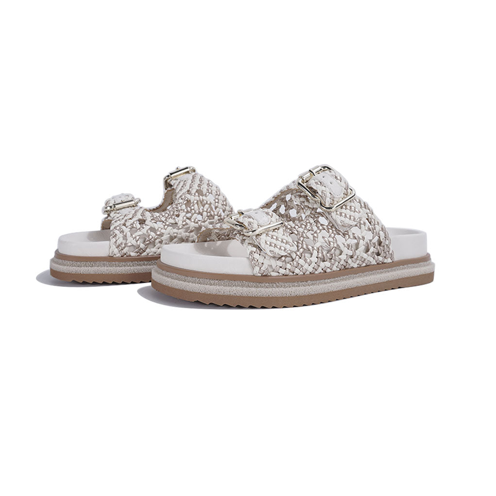 Rålekre sandaler i flettet skinn med 2 spenner for optimal komfort.