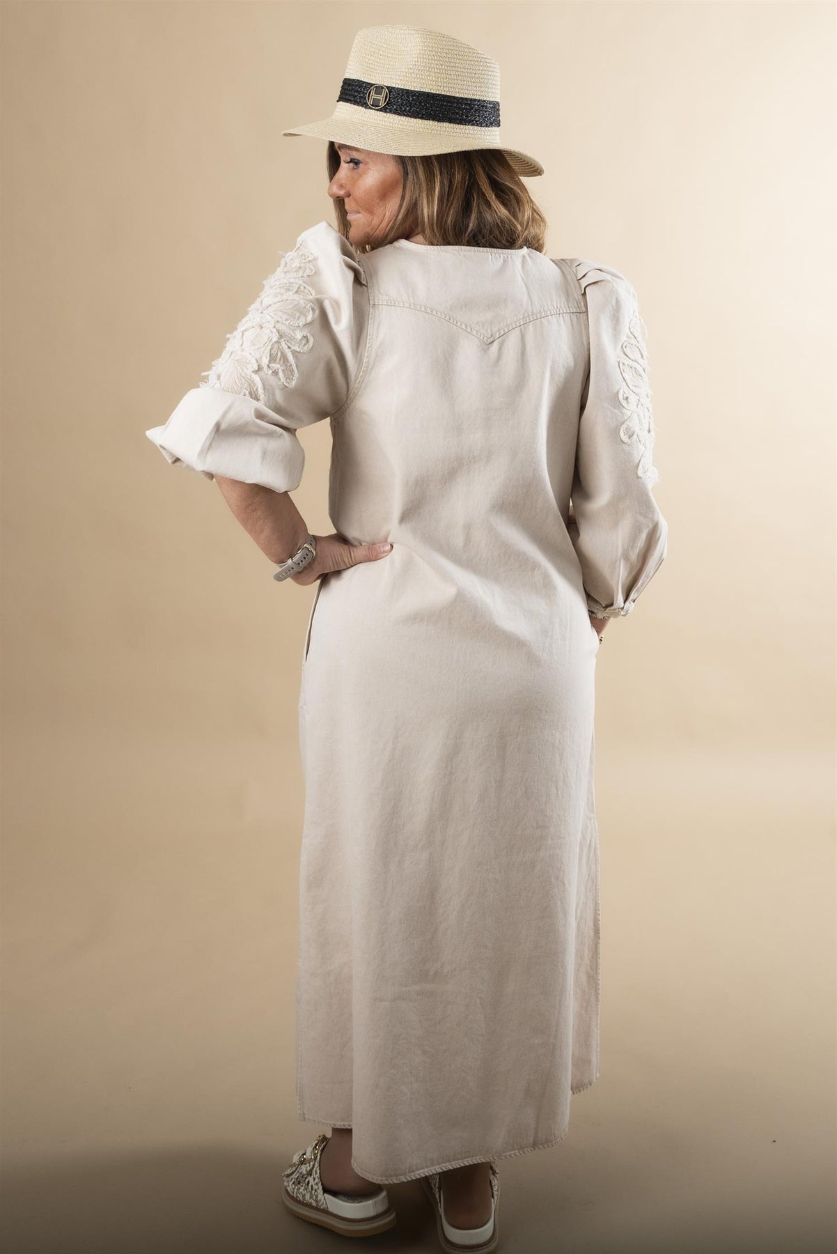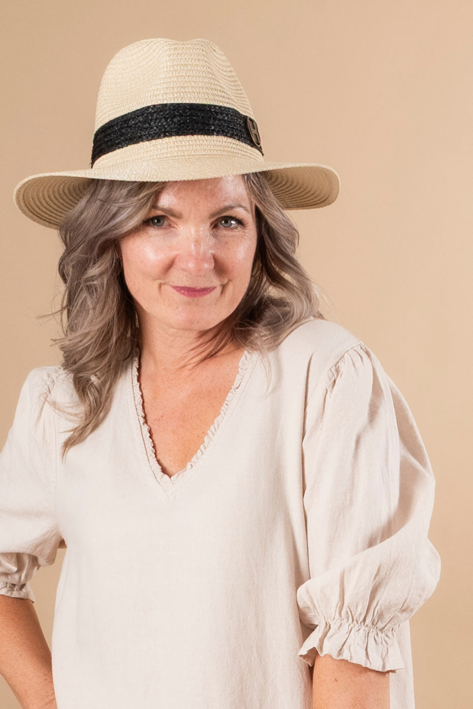 Den utfyller ethvert antrekk samtidig som den gir nødvendig skygge og solbeskyttelse. Omfavn essensen av sommeren med sin lette design og pustende konstruksjon. Enten du slapper av ved bassenget eller utforsker nye destinasjoner, sikrer ALLESANDRA Strawhat at du holder deg kjølig og elegant hele sesongen.