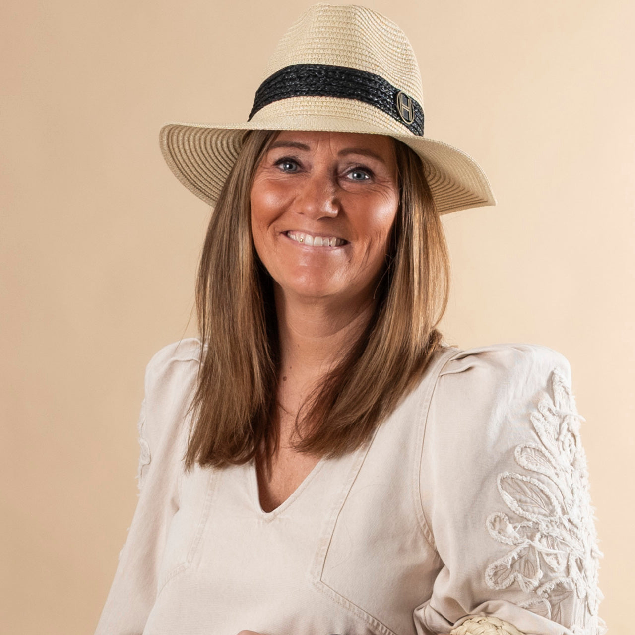 Lekker solhatt med delikat og ekslusiv logo.