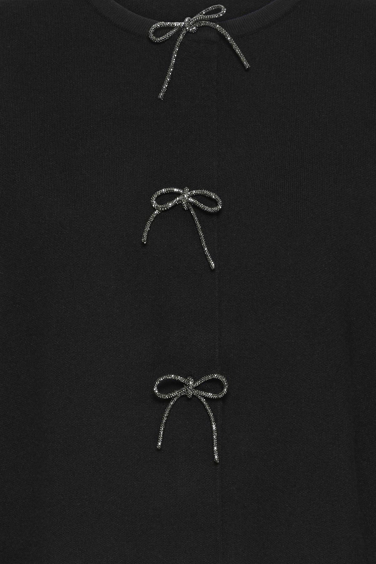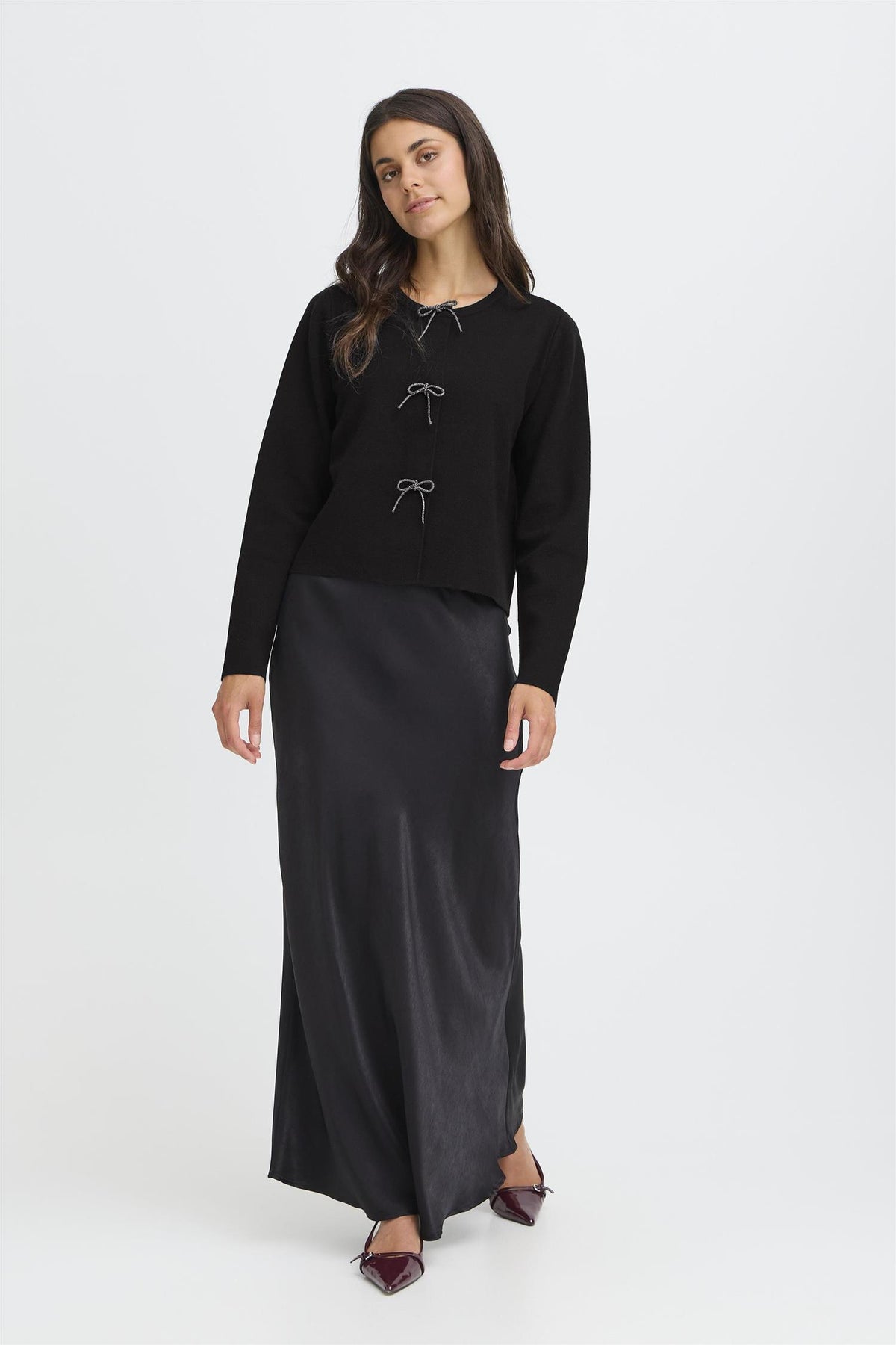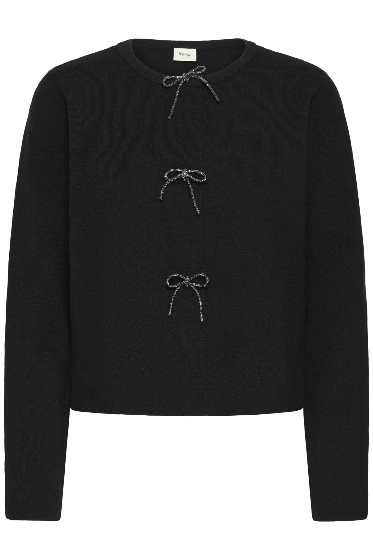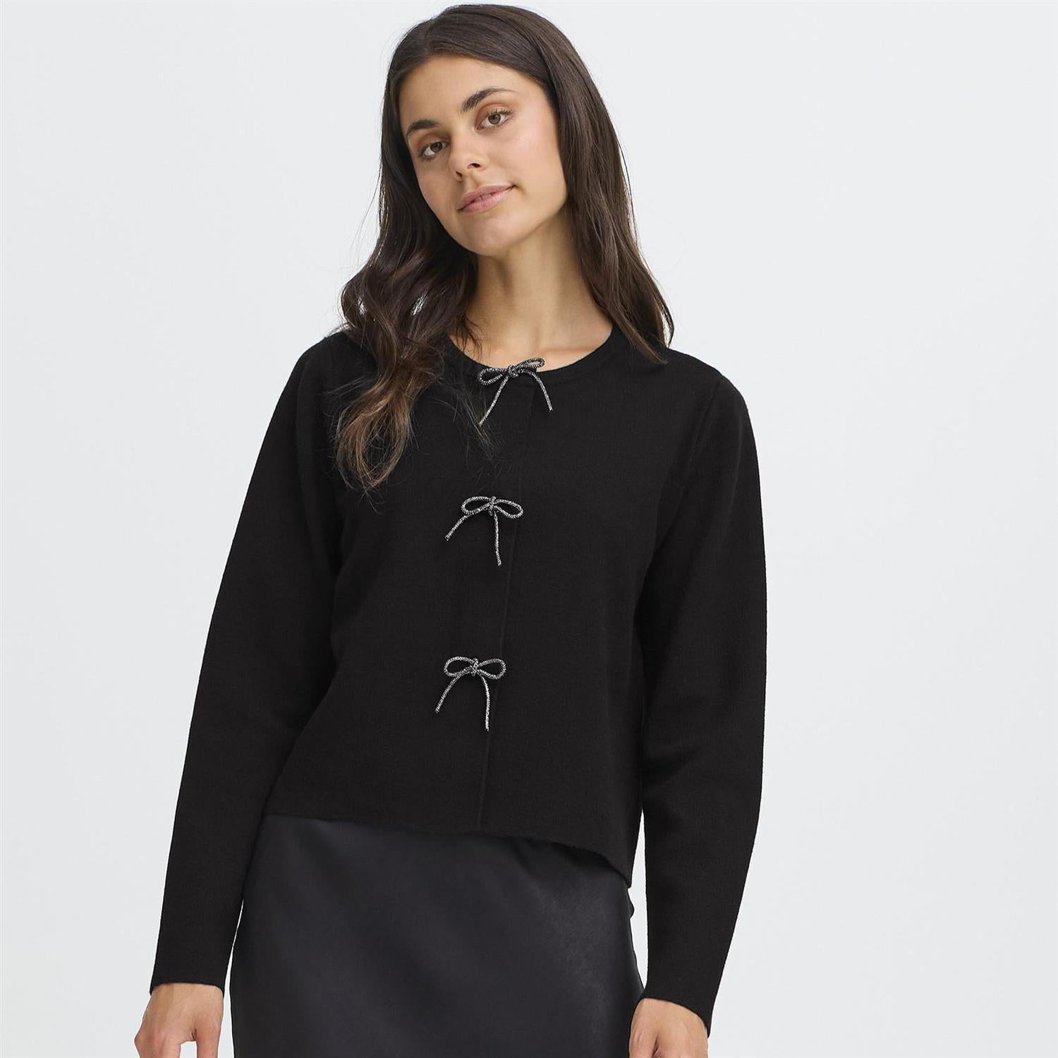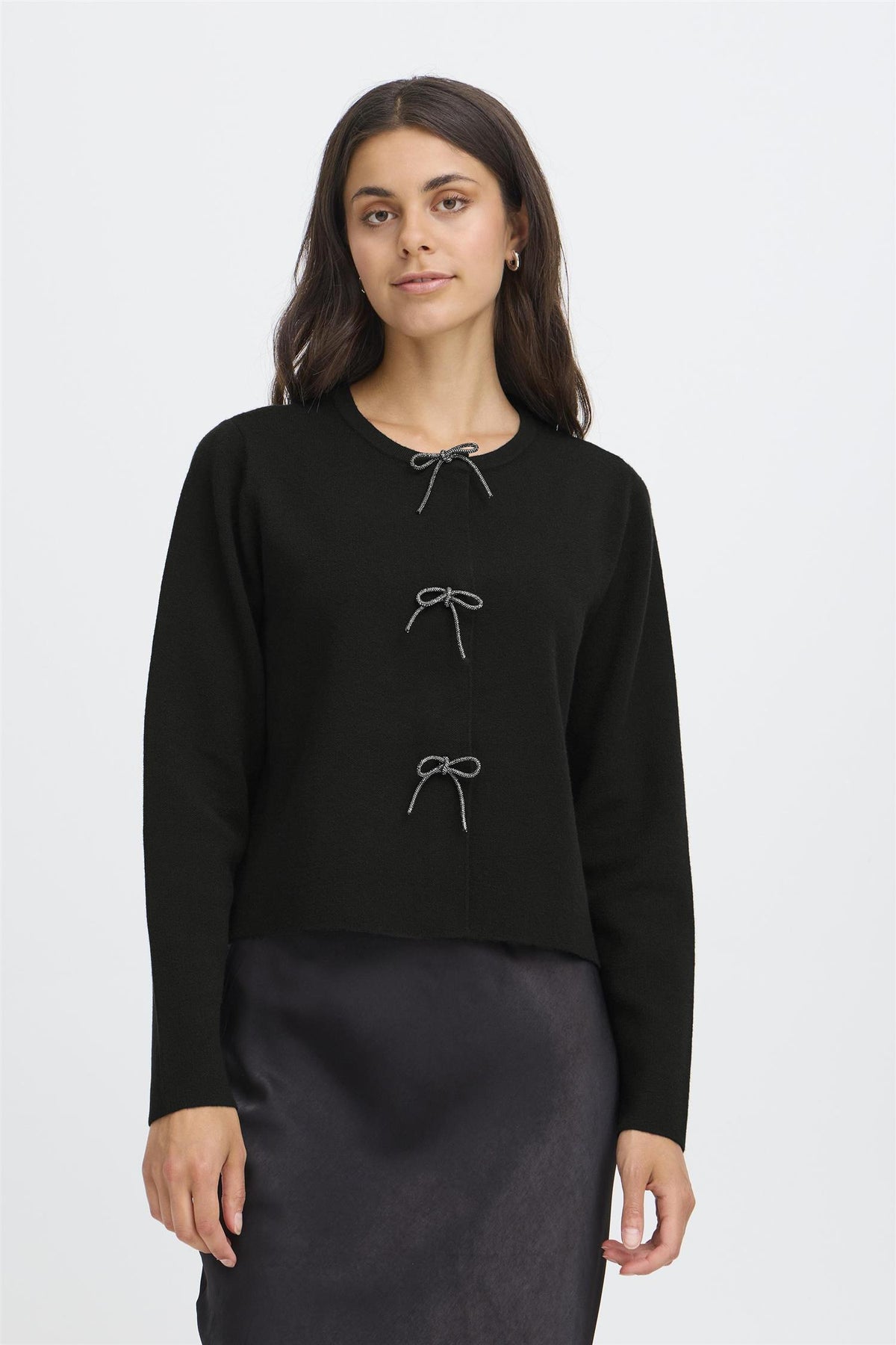 Supersøt cardigan med dekorative sløyfer foran gir et unikt preg. Rett passform, rund hals og lange ermer.