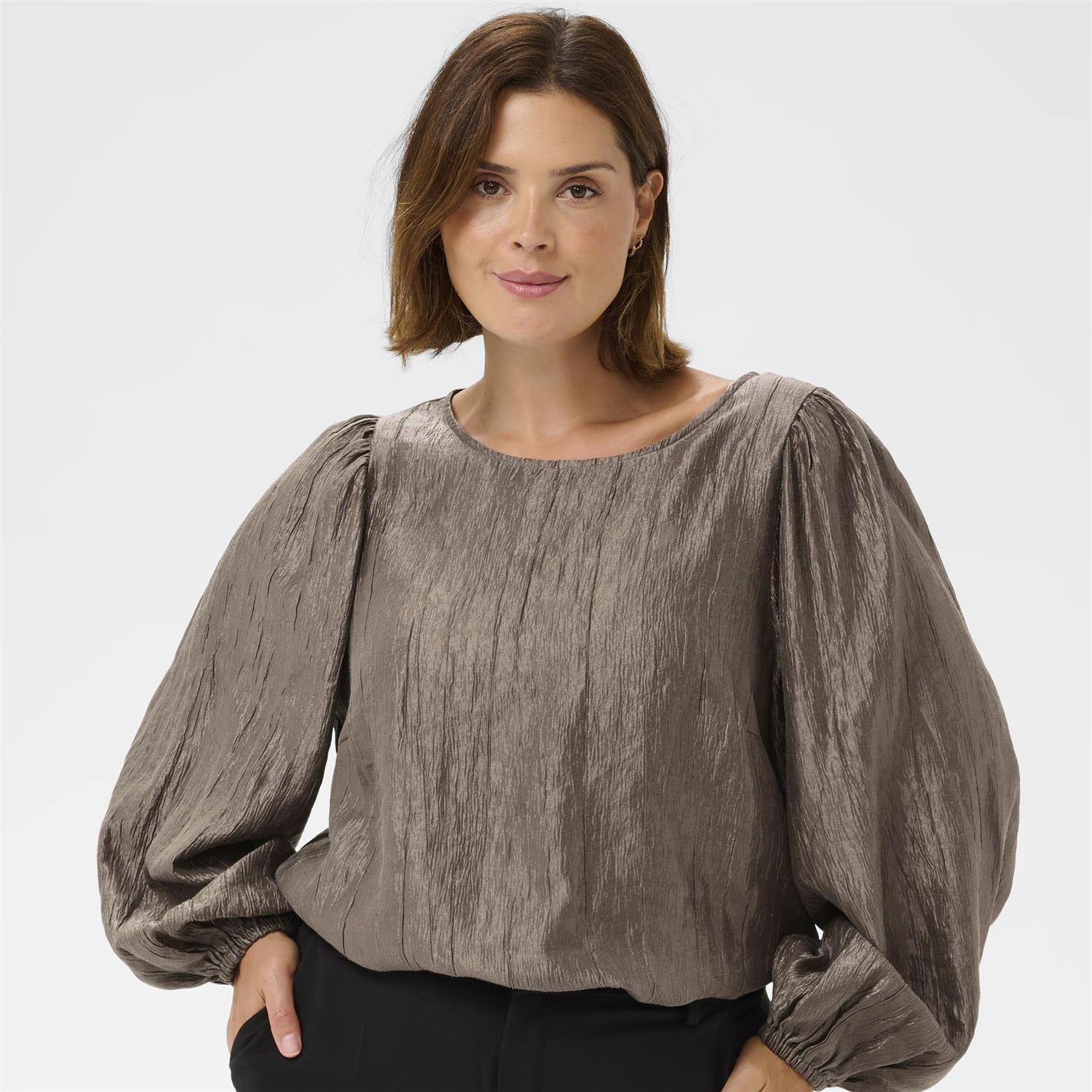 Kul party-bluse med ledig passform og trendy ballong-ermer som gir et moderne uttrykk. Rund hals og subtil glans i en vakker farge, gjør den egnet for både hverdag og fest.