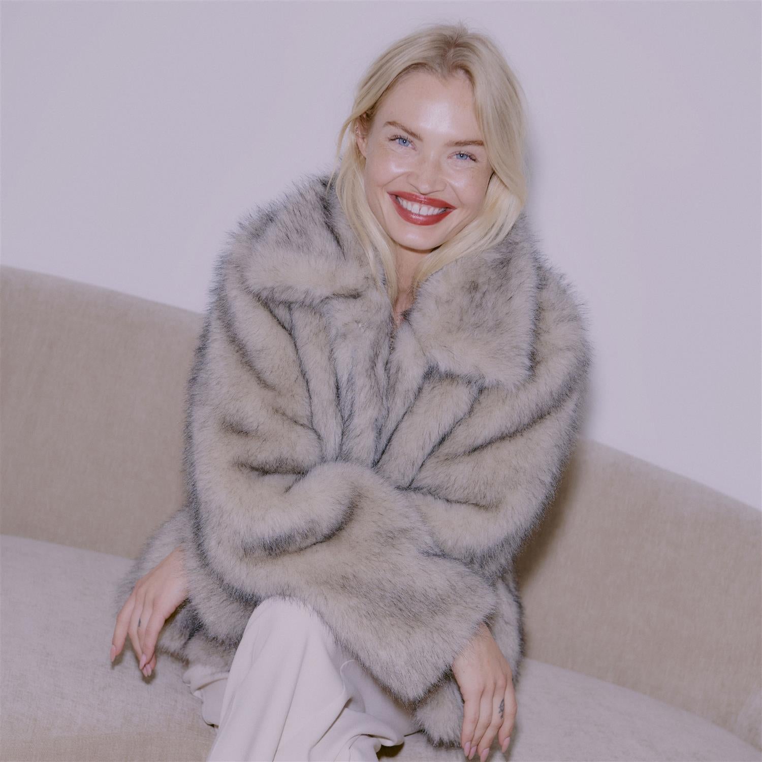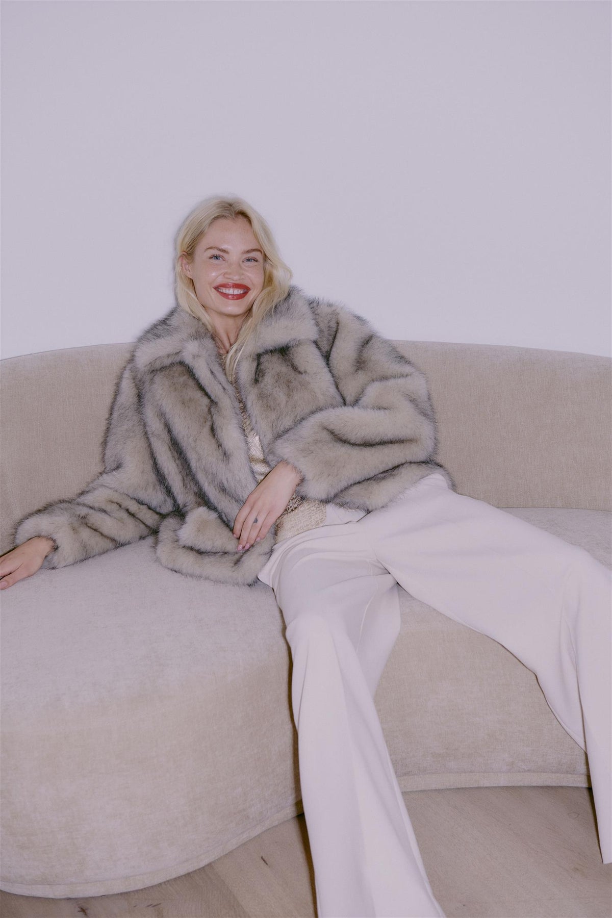 Typete og kul fuskepelsjakke som gir behagelig varme, komfort og stil. Klassisk krage, lange ermer og rett passform gir en elegant og tidløs stil til hverdagsbruk, og perfekt til festlige anledninger.