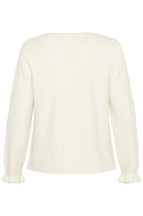 Myk og delikat cardigan med rund hals og lange ermer med søt avslutning.