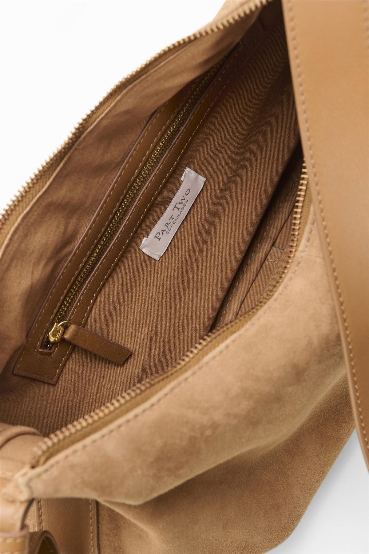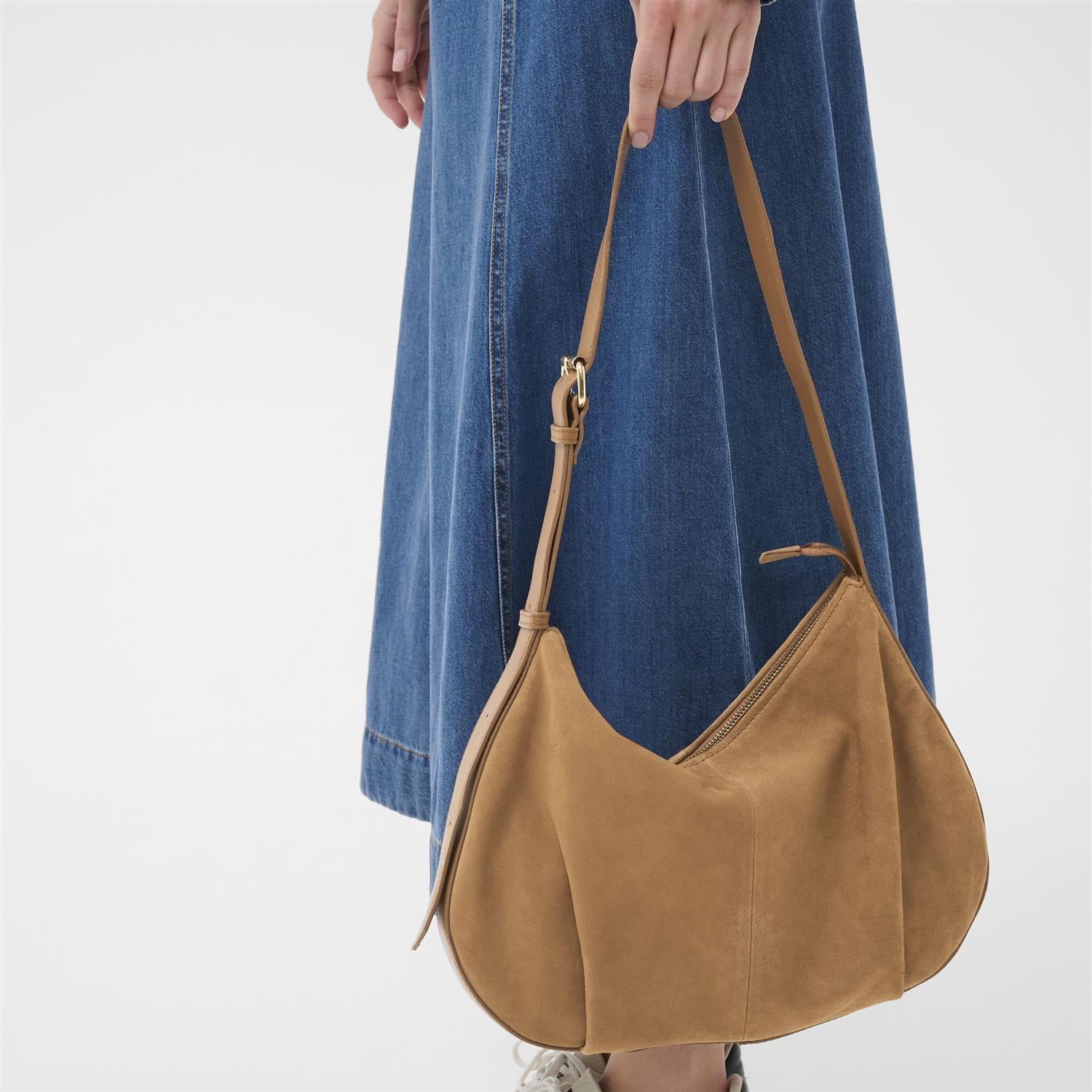 Supertrendy skulderveske i mykt semsket skinn, med et elegant og tidløst design. Den justerbare lærreimen og glidelåslukkingen sikrer både komfort og funksjonalitet. Det romslige interiøret gjør den ideell for hverdagsbruk, samtidig som den gir en sofistikert touch til ethvert antrekk.