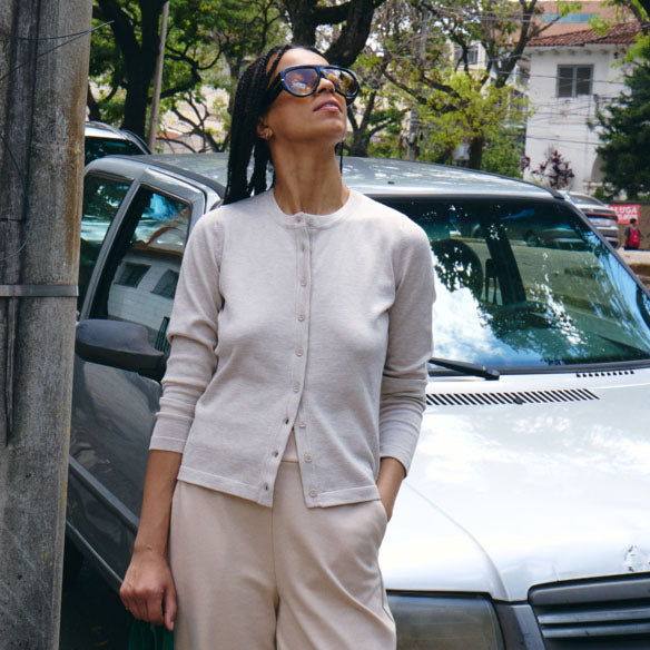 IHLULS O-NECK Cardigan - Oatmeal Melange