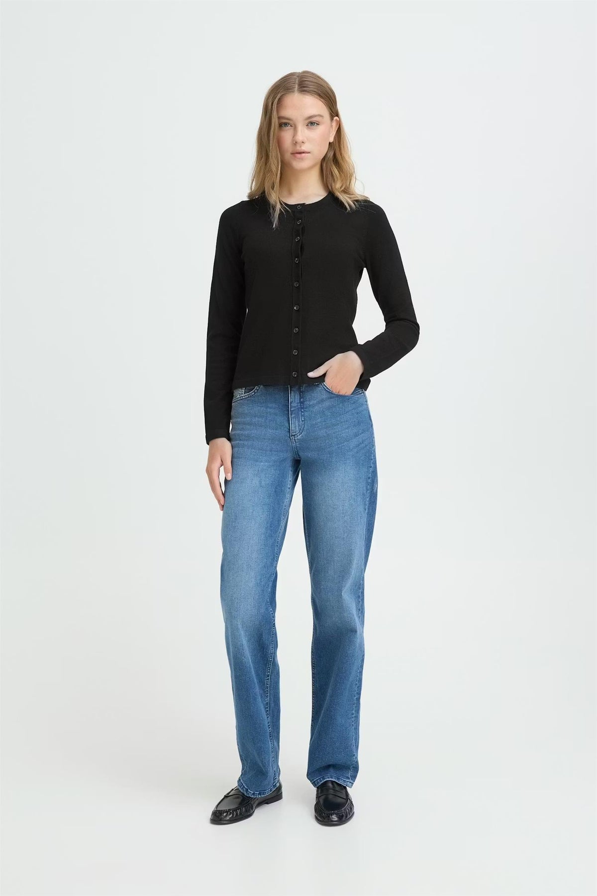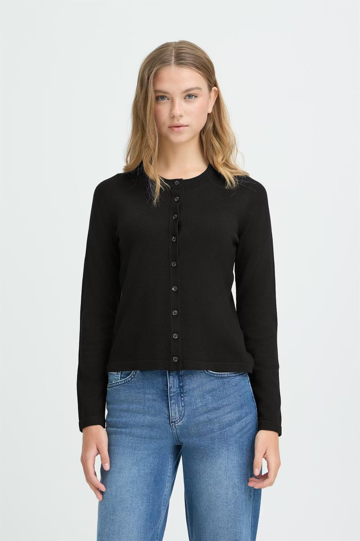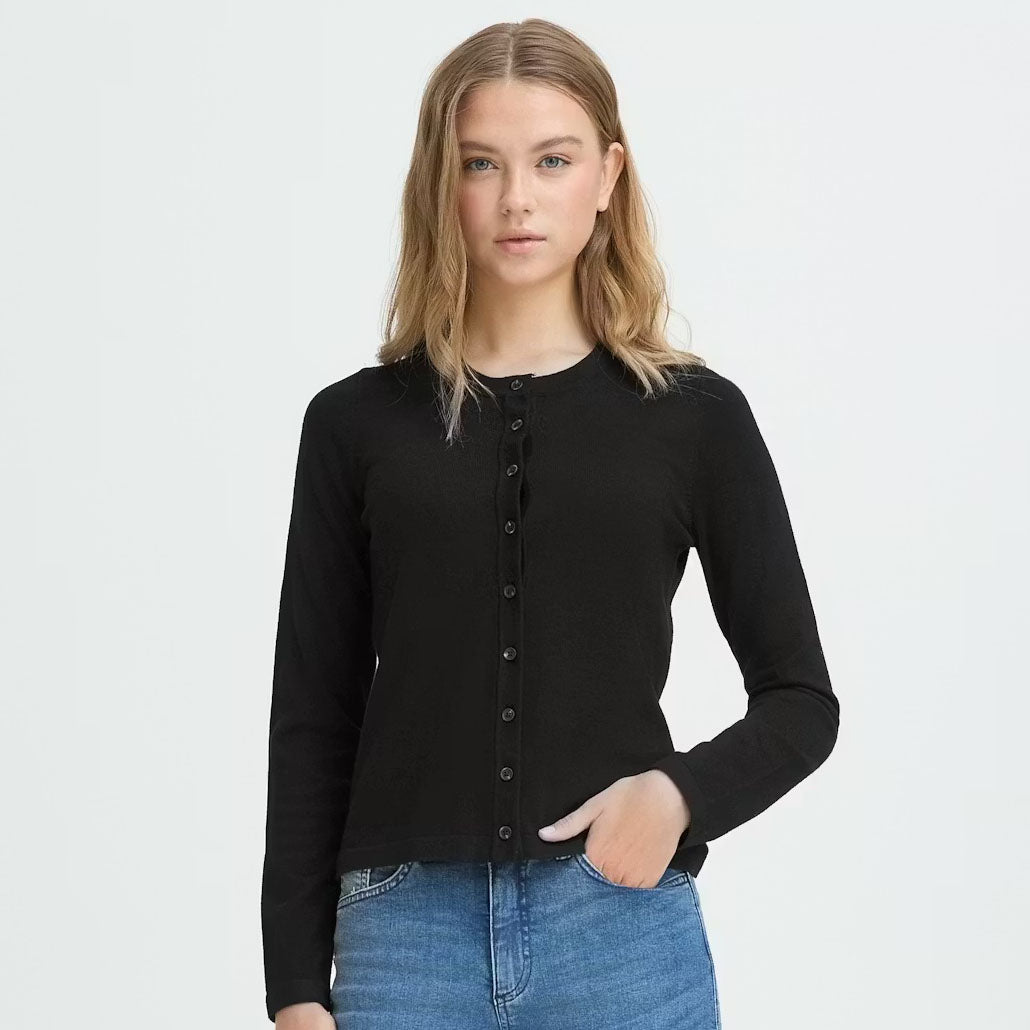 Prisgunstig strikket cardigan med rett passform, rund hals og lange ermer. Glatt overflate og hel knappelukking gir et rent, minimalistisk uttrykk.