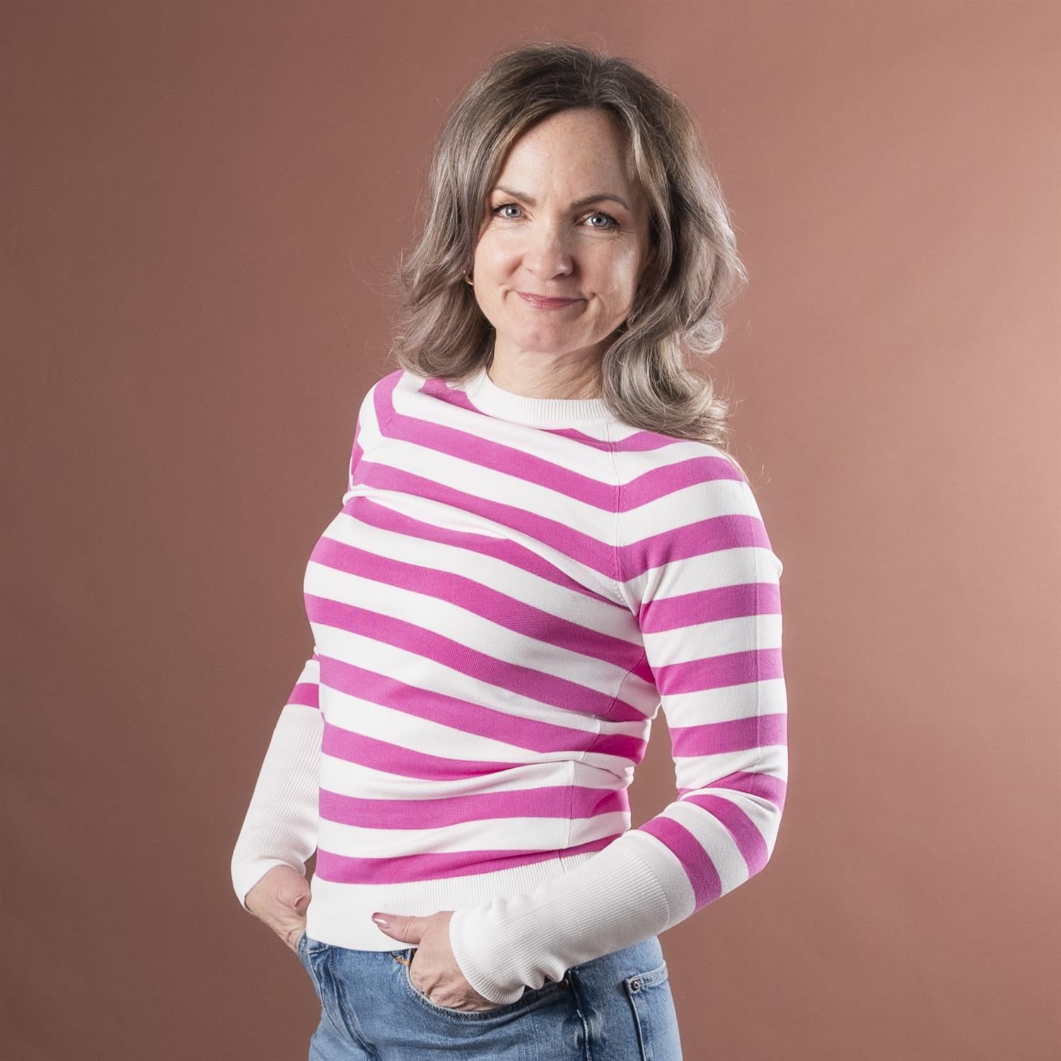 Strikket smal genser i myk og deilig viscose, med normal passform, rund hals og lange smale ermer. Ribbestrikkede kanter gir komfort og gjør den allsidig til ulike anledninger.